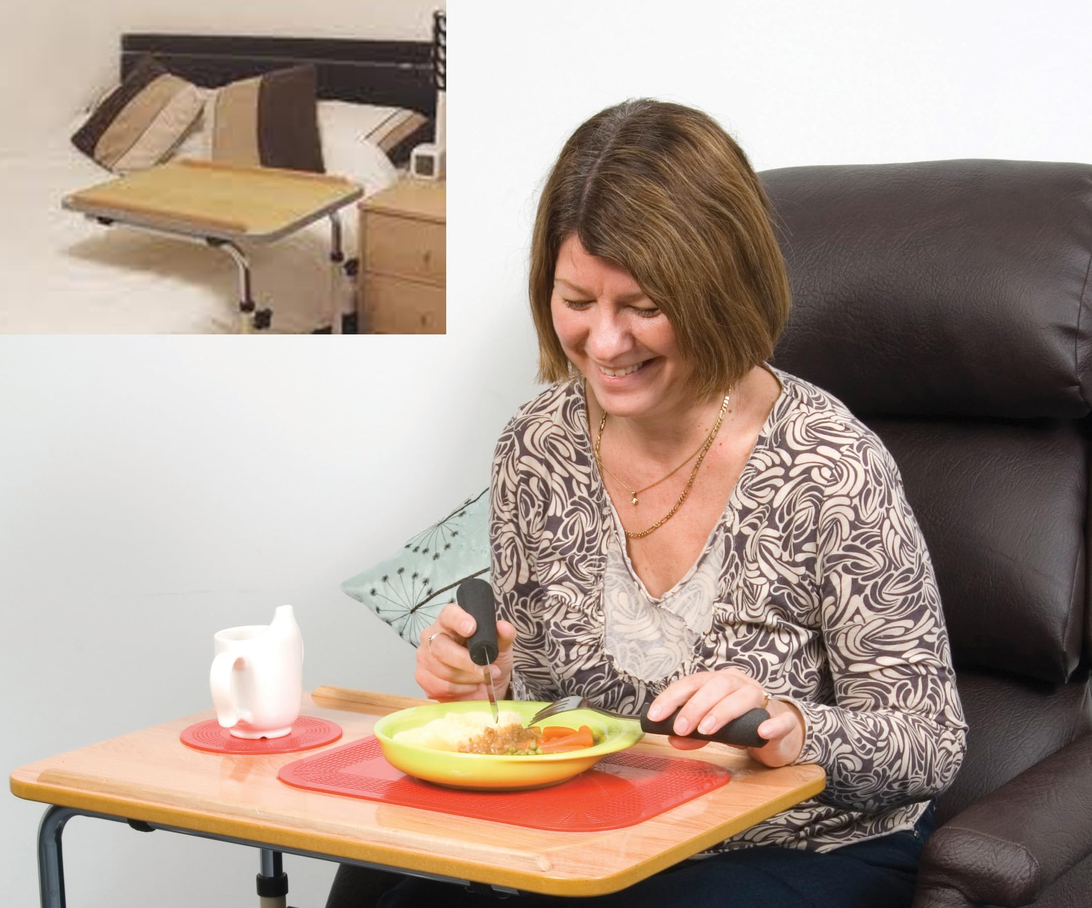 Galds ir īpaši daudzpusīgs un ideāli piemērots dzērienu novietošanai vai maltīšu ēšanai gultā vai televizora priekšā. To var izmantot svarīgu priekšmetu, piemēram, tālruņa vai lasāmbriļļu, novietošanai. Galdu var noliekt, lai grāmatu vai žurnālu novietotu ideālā lasīšanas leņķī. Novietotu horizontāli, to var izmantot rakstīšanai, puzļu risināšanai vai galda spēļu spēlēšanai.