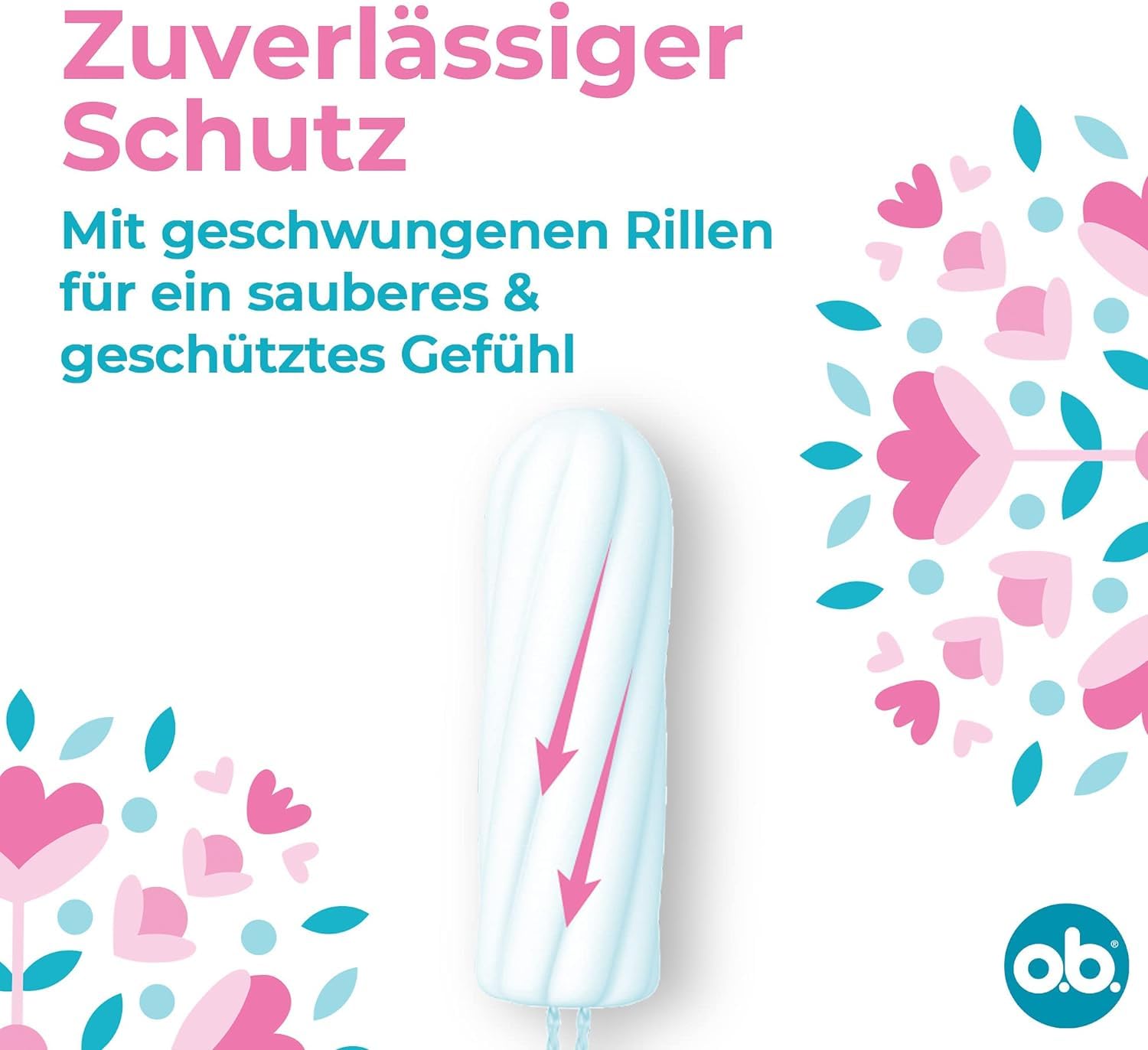 -  Izliektas rievas uzticamai aizsardzībai: ob Original Super Tampons ar izliektām rievām efektīvi ievada šķidrumu tampona iekšpusē, nodrošinot tīrības sajūtu.
