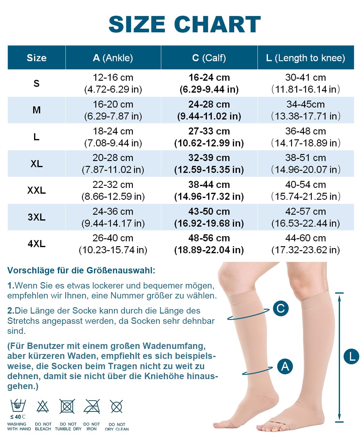 - Augstas kvalitātes meistarība, izturība un ilgmūžība: Esam iegādājušies vācu zeķu adīšanas mašīnas un spiediena pārbaudes iekārtas, kas izmanto stingrāku spirālveida adīšanas procesu, un katra kompresijas zeķe tiek pakļauta stingrai spiediena pārbaudei. Bez iespiedumiem vīlēs un pastiprinātiem papēžiem. Saglabā labu atbalstu pat pēc daudzām mazgāšanas reizēm.