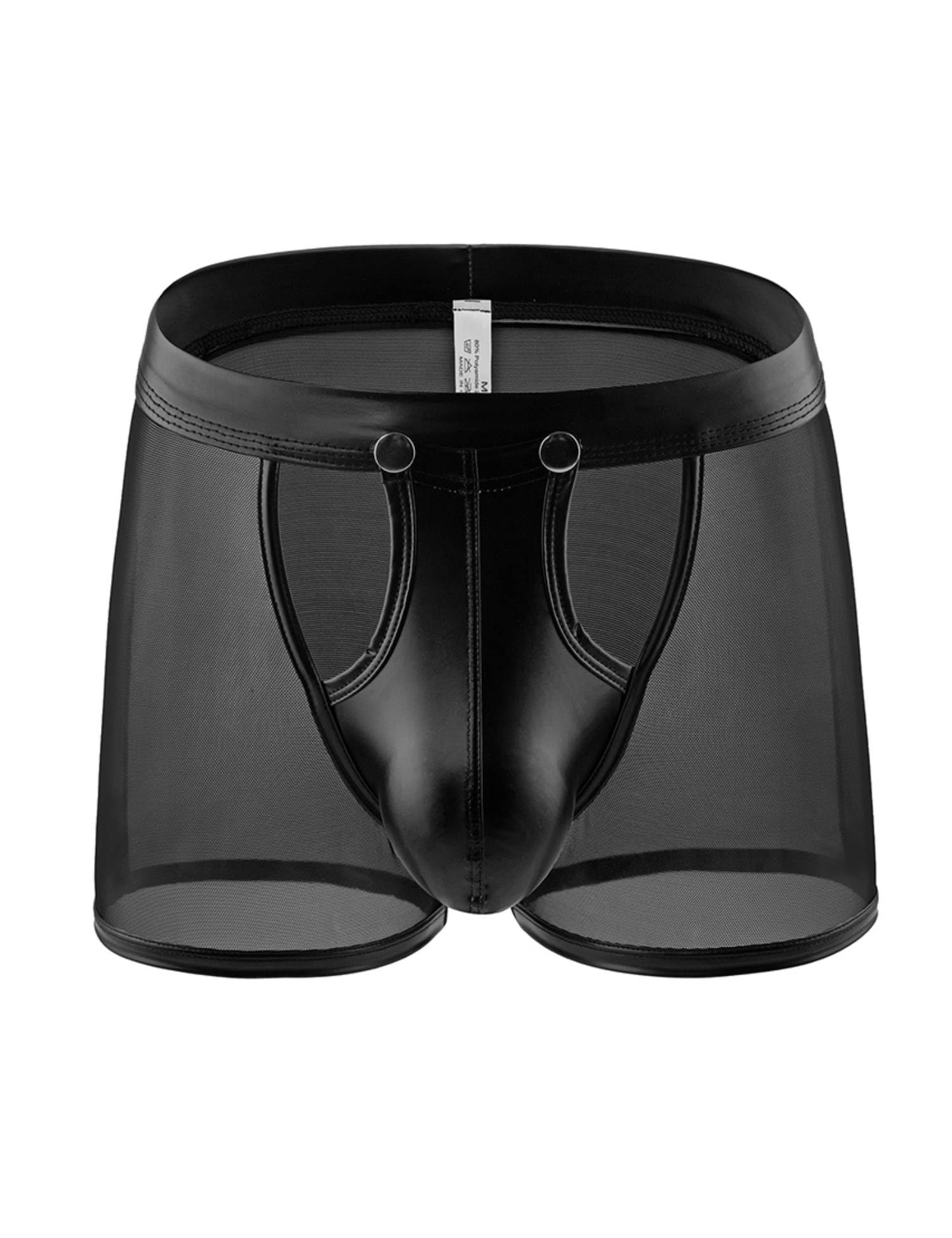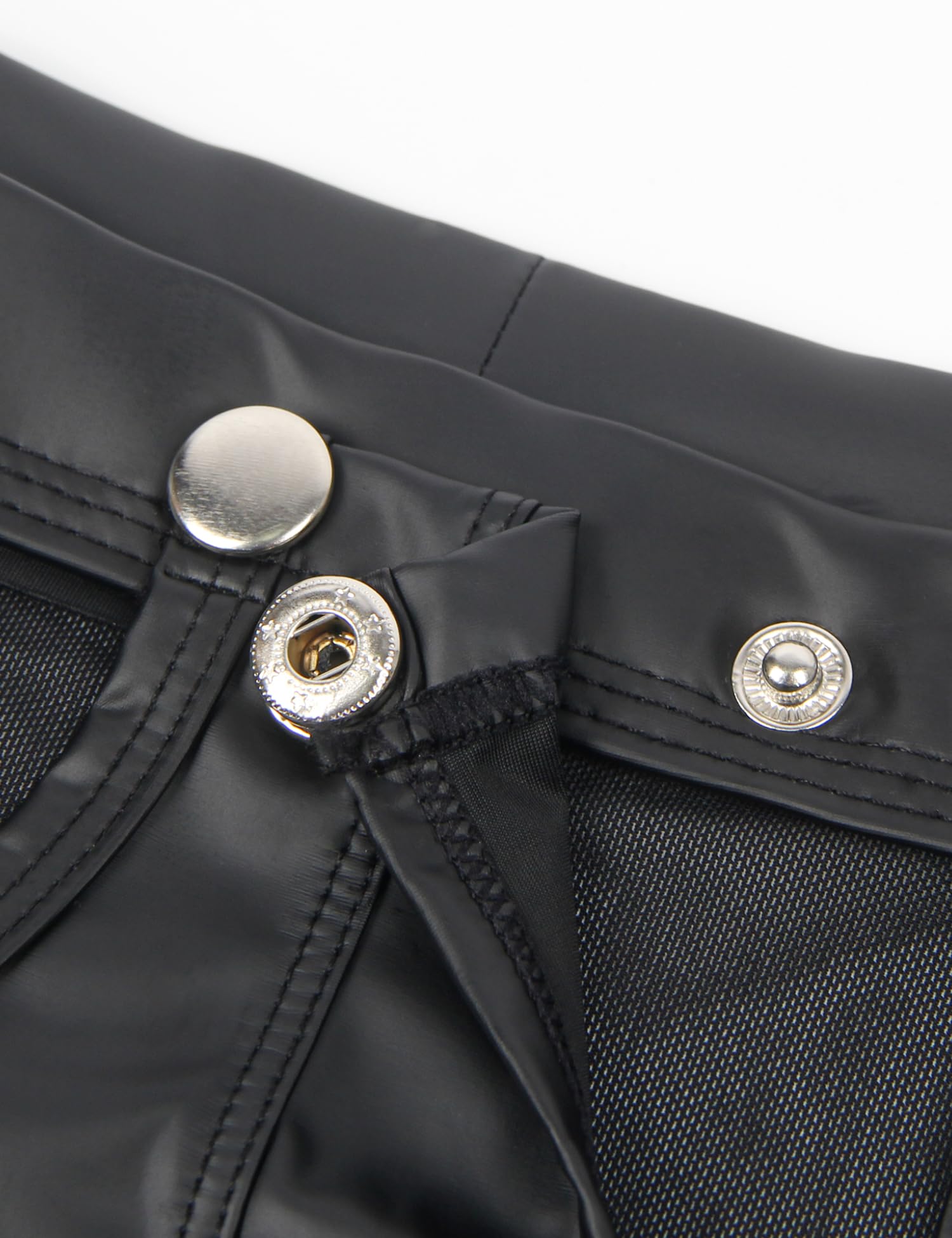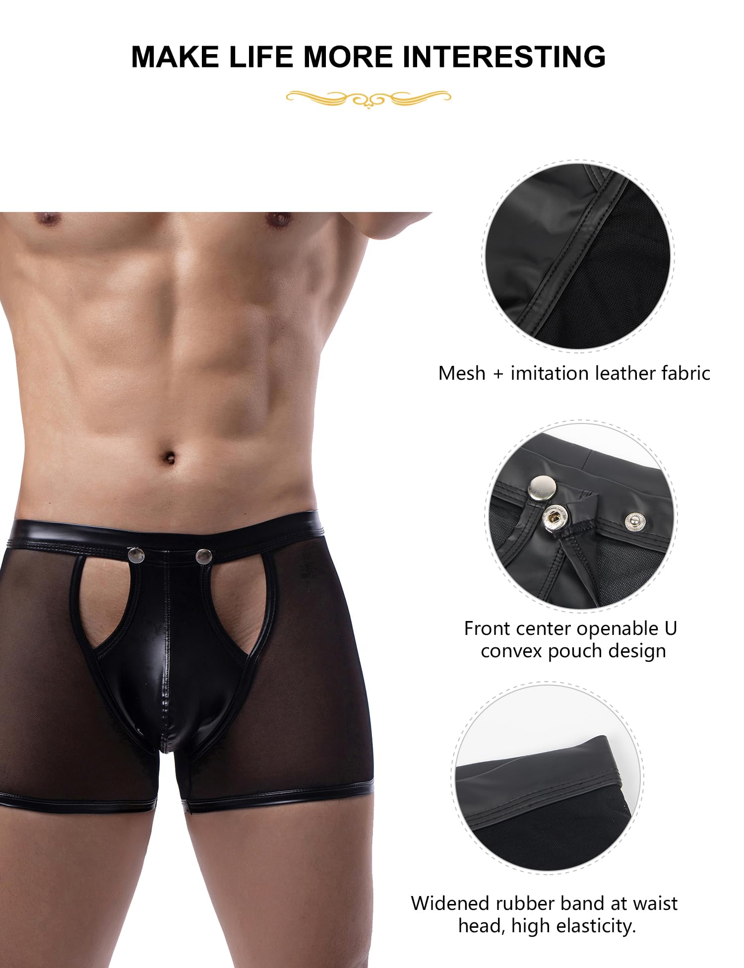 ohmydear vīriešu bokseršorti ādas bokseršorti erotiska apakšveļa seksam tīklveida apakšveļa vīriešu seksīgas apakšbikses mitra izskata stringšorti atverams maciņš ar spiedpogas aizdari