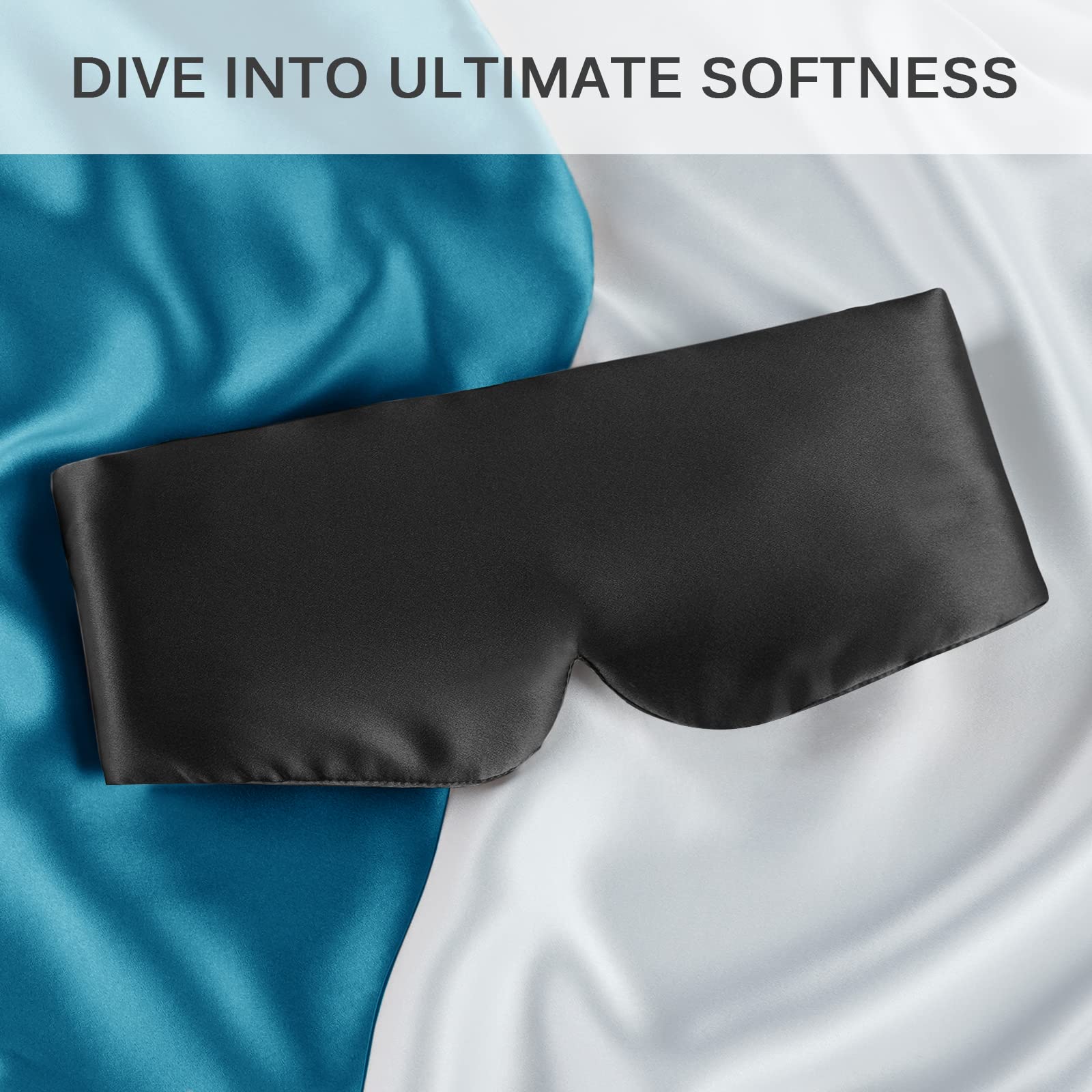 OLESILK 100% zīdkoka zīda miega maska acu maska ar regulējamu galvas saiti vīriešiem un sievietēm, liela miega maska un aizsietām acīm nakts miegam, ceļojumiem un diendusai, melna