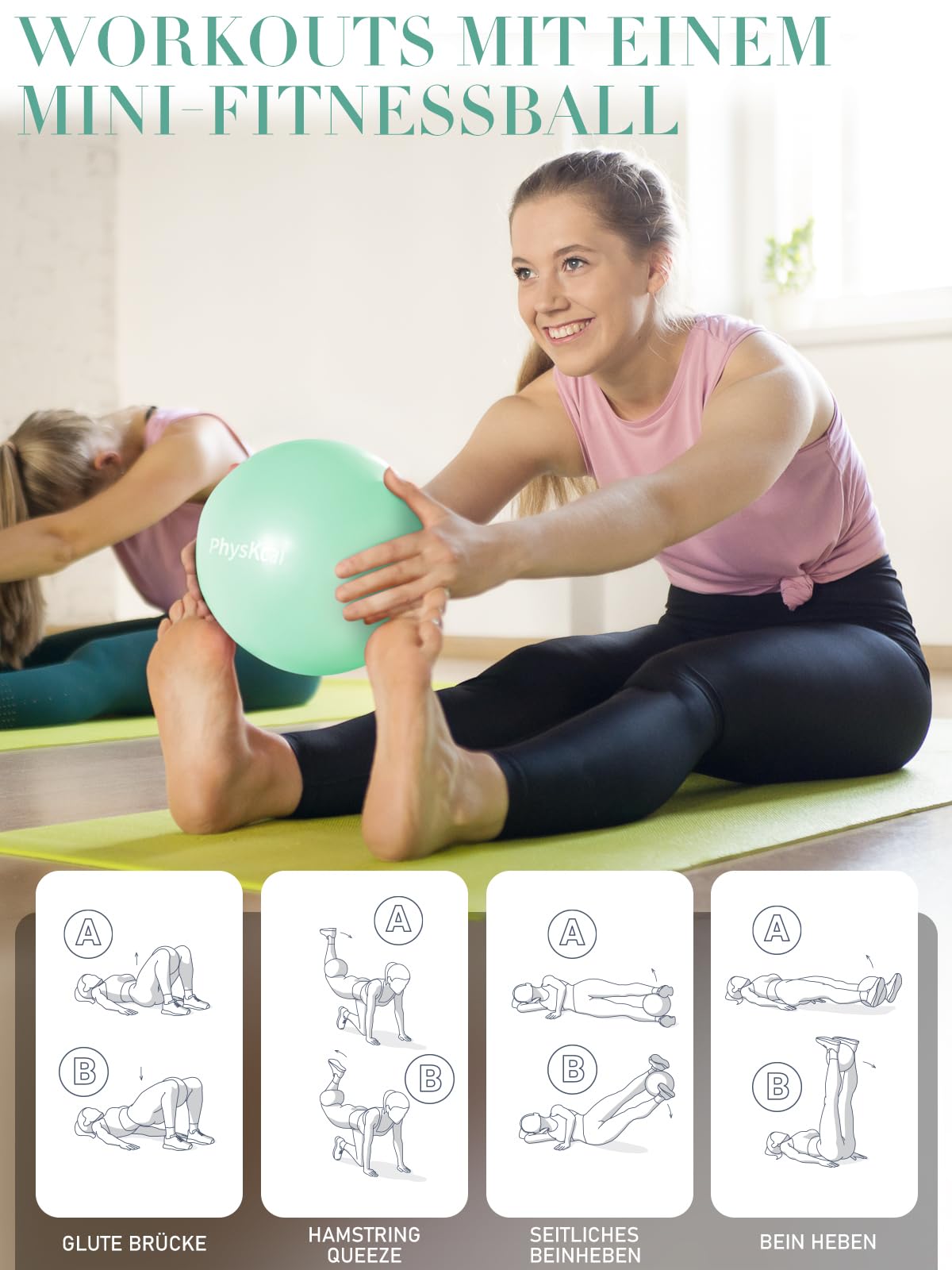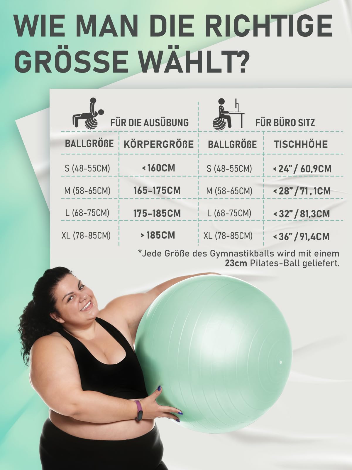 - 🤍𝗘𝗜𝗡 𝗖𝗟𝗘𝗜𝗡𝗘𝗥𝗣𝗜𝗟𝗔𝗧𝗘𝗦𝗕𝗔𝗟𝗟𝗟𝗟𝗟𝗜𝗩𝗘 - Iegādājoties šo vingrošanas bumbu, komplektā ietilpst arī 22 cm Pilates bumba. Tā ir daudzpusīga maza jogas bumba, kas paredzēta korsetes stiprināšanai, stājas uzlabošanai un muguras rehabilitācijai. Šī bumba ir absolūti nepieciešama vingrinājumiem un stabilitātes palīglīdzekļiem sporta zālē, birojā vai mājās, un to iesaka fizioterapeiti un treneri.