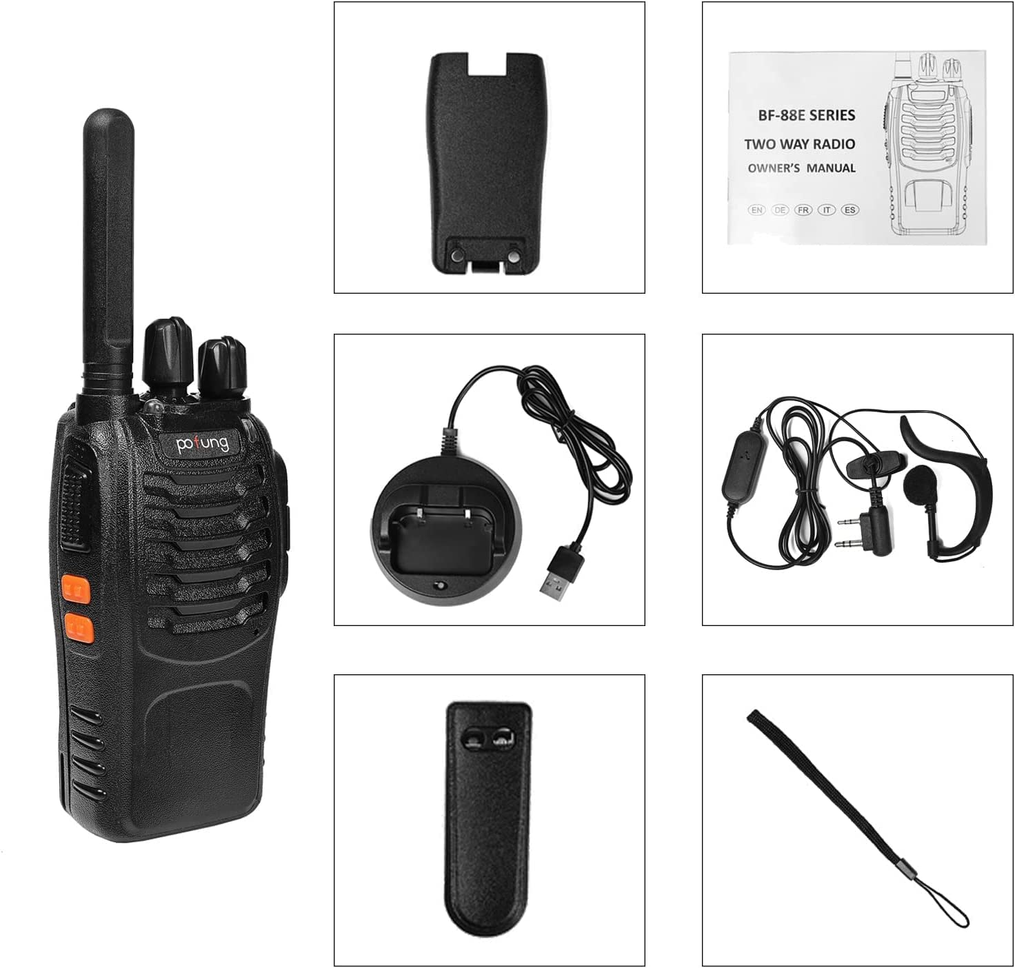 Pofung PT88E rācija PMR446 bezlicencēts divvirzienu rācija, 16 kanālu tālas darbības rādiusa rācijas ar uzlādes statīvu un austiņām (melna, 3 iepakojumā)