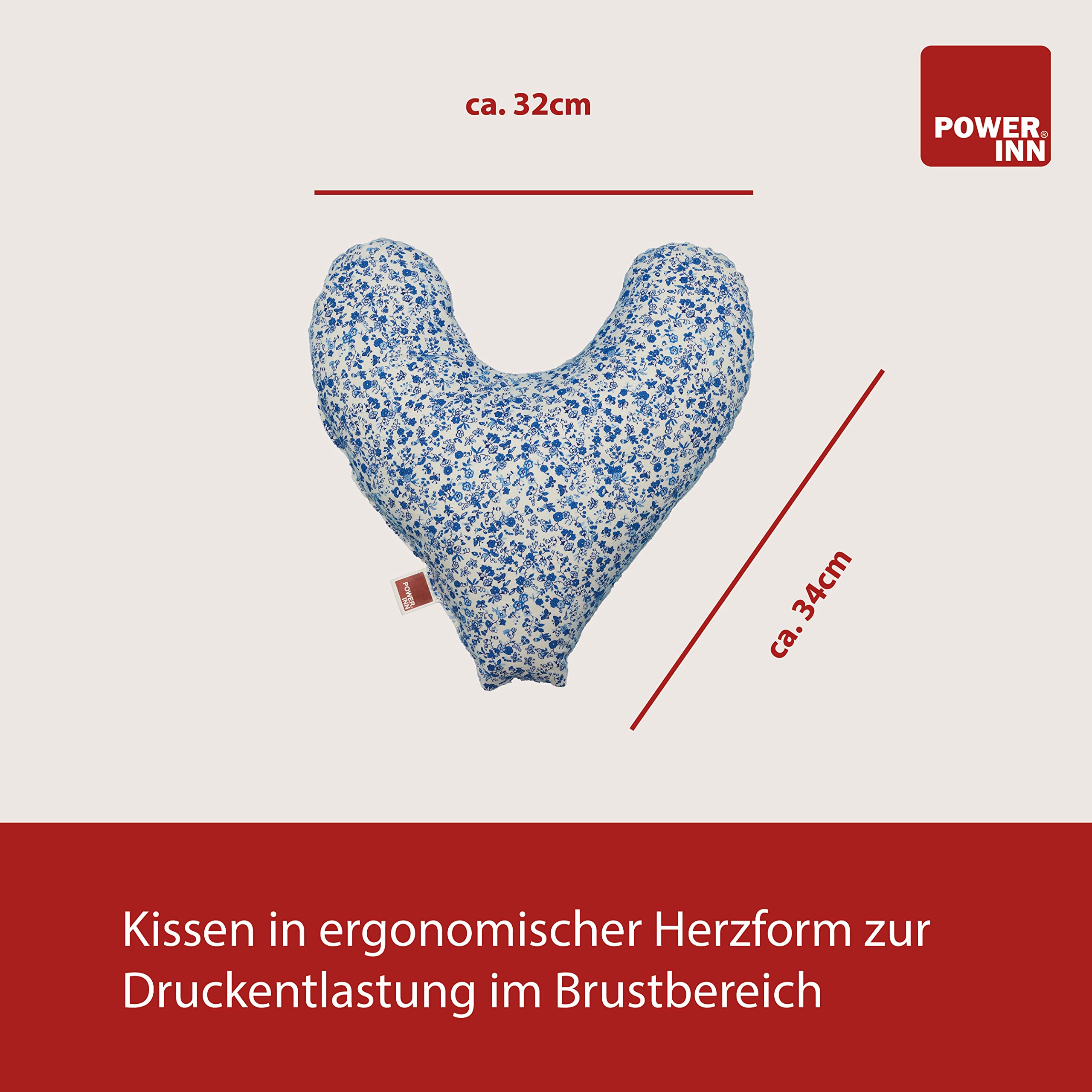 POWER INN krūšu spilvens Hope apm. 32x34 cm | Sirds spilvens kā sāpju mazināšana pēc mastektomijas | mīksts apakšdelma vai paduses spilvens | 100% kokvilna (sarkana)