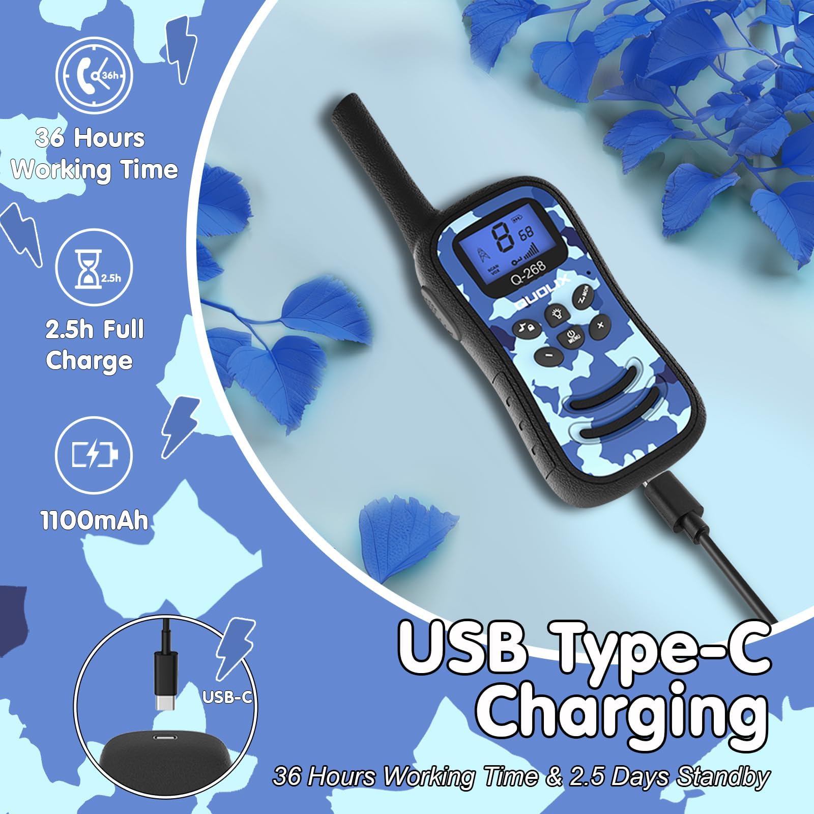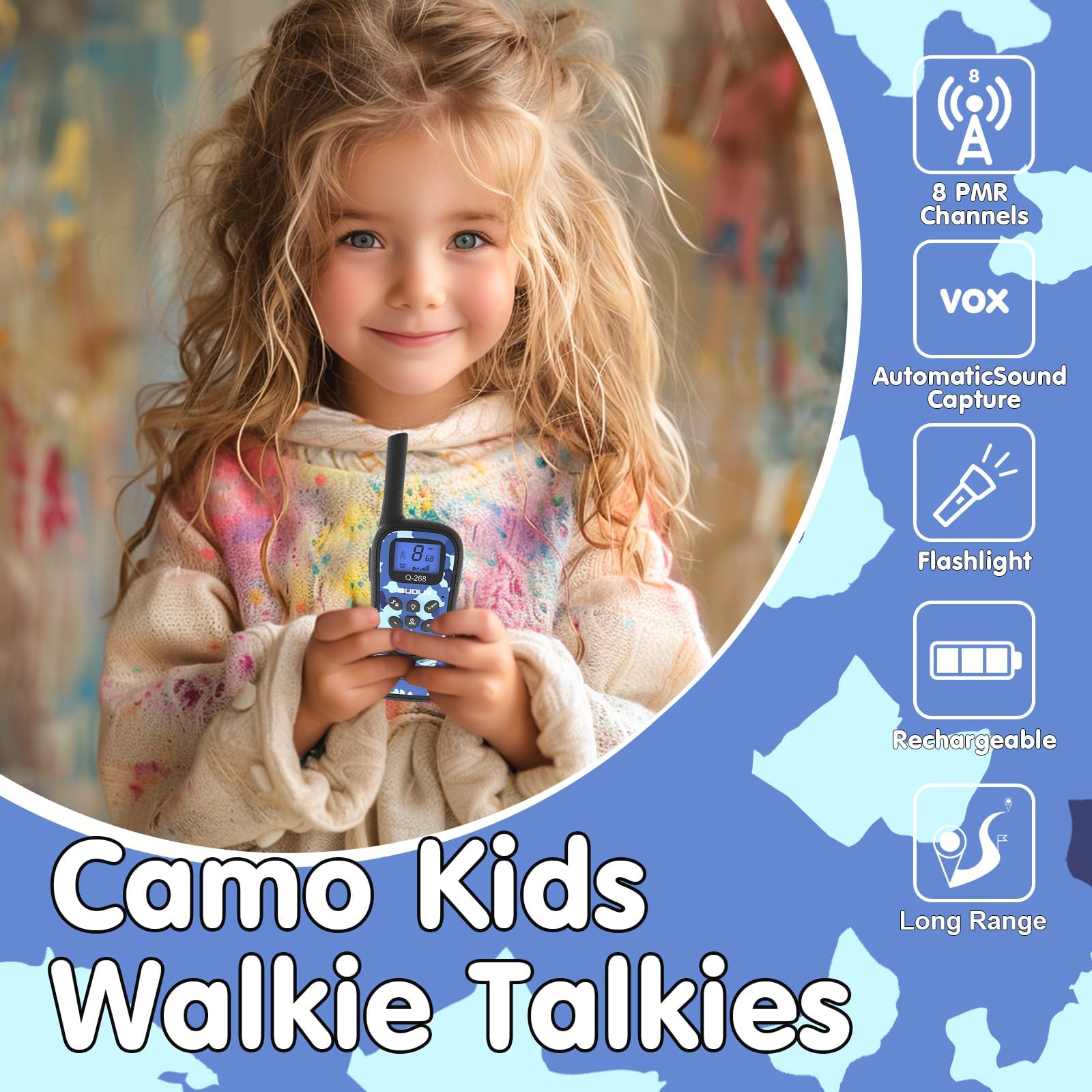 - 【Stilīgs un bērniem draudzīgs dizains】Mūsu rācijas pārsteidz ar stilīgu maskēšanās rakstu un ergonomisku, vieglu dizainu – ideāli piemērotas mazām rociņām! Gan telpās, gan ārā bērni var izklaidēties, sazinoties un attīstot komandas garu.
