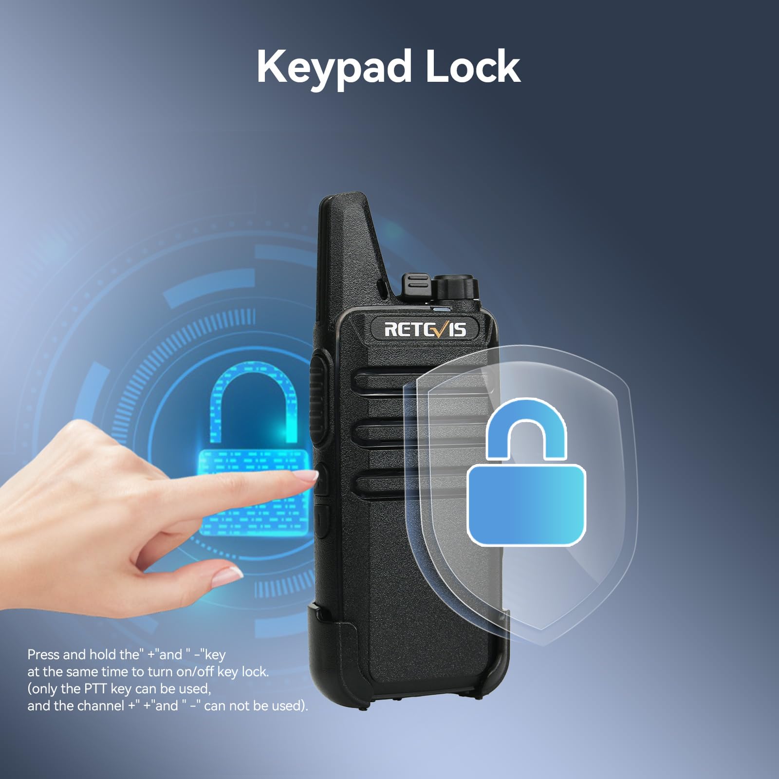 Retevis RT622 Walkie Talkie Mini, PMR446 profesionāls divvirzienu rācijas tālrunis tālsatiksmes sakariem, VOX, uzlādējams automašīnas rācijas tālrunis pieaugušajiem, kempingam (melns, 1 pāris)