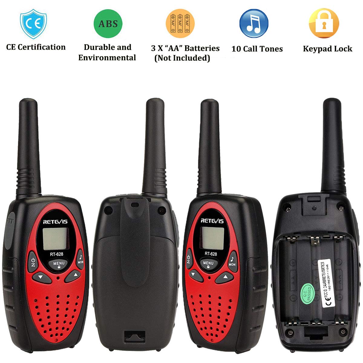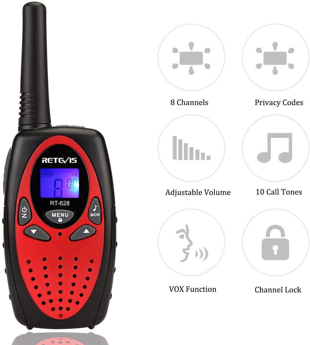 Retevis RT628 rāciju komplekts (4 gab.), bērnu rācijas ar lielu darbības rādiusu, Lieldienu dāvanas bērniem, rotaļlietas 3–12 gadus veciem bērniem, dāvanas dzimšanas dienām, svētkiem, kempingam, piedzīvojumiem (2 pāri, sarkani)