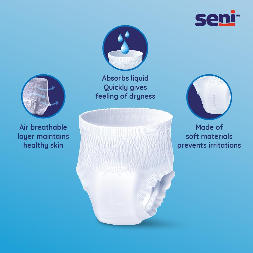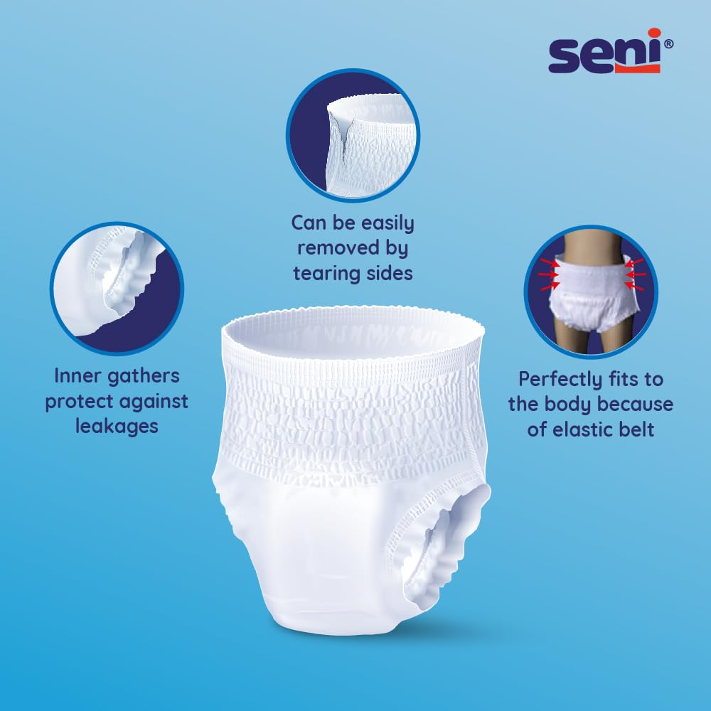 Seni Active Classic Pants ir īpašas elpojošas urīna nesaturēšanas bikses vīriešiem un sievietēm. Seni Active Classic Pants produktu ārējā daļa ir izgatavota no īpaša, tvaiku caurlaidīga materiāla, kas ļauj ādai brīvi elpot un droši notur šķidrumu produkta iekšpusē. Seni Active Classic biksēm ir EDS slānis. Īpašais EDS slānis nodrošina šķidruma ātru sadalījumu un iesūkšanos absorbējošajā kodolā, tādējādi radot patīkami sausu sajūtu. Bikses satur superabsorbējošu materiālu, kas novērš nepatīkamu smaku veidošanos. Seni Active Classic bikses nesatur lateksa elementus. Tā vietā tika izmantota elastīga dzija. Tas samazina alerģiju risku līdz minimumam. Seni produktus var droši lietot cilvēki, kuriem ir alerģija pret lateksu. Seni produktu īpašā forma ļauj optimāli pielāgoties ķermenim. Tas ļauj skartajai personai baudīt pilnīgu pārvietošanās brīvību, komfortu un rīcības brīvību.