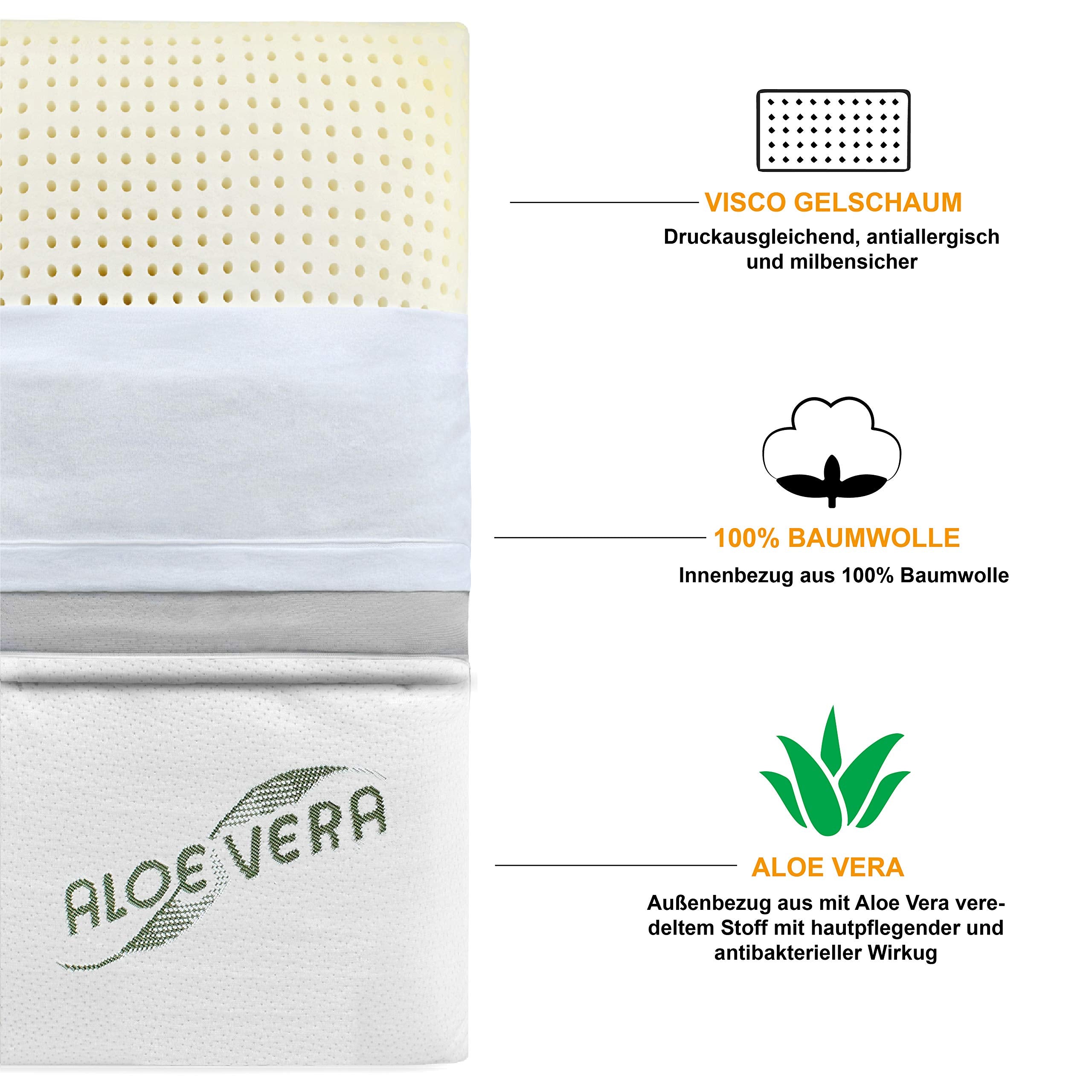 Siebenschläfer ortopēdiskais kakla atbalsta spilvens - spilvens, kas izgatavots no spiedienu izlīdzinošām viskozgela putām (atmiņas putām) ar alvejas pārvalku - spilvens 70x42cm augstumā 15cm