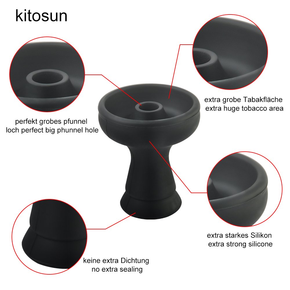 - ✔Ietaupiet garšas: Silikona ūdenspīpes bļoda ir izstrādāta, lai novērstu ūdenspīpes sulas noplūdi un saglabātu tabaku mitru. Tas arī neuzsūc smakas! Piltuves forma ilgākam ūdenspīpes kalpošanas laikam.