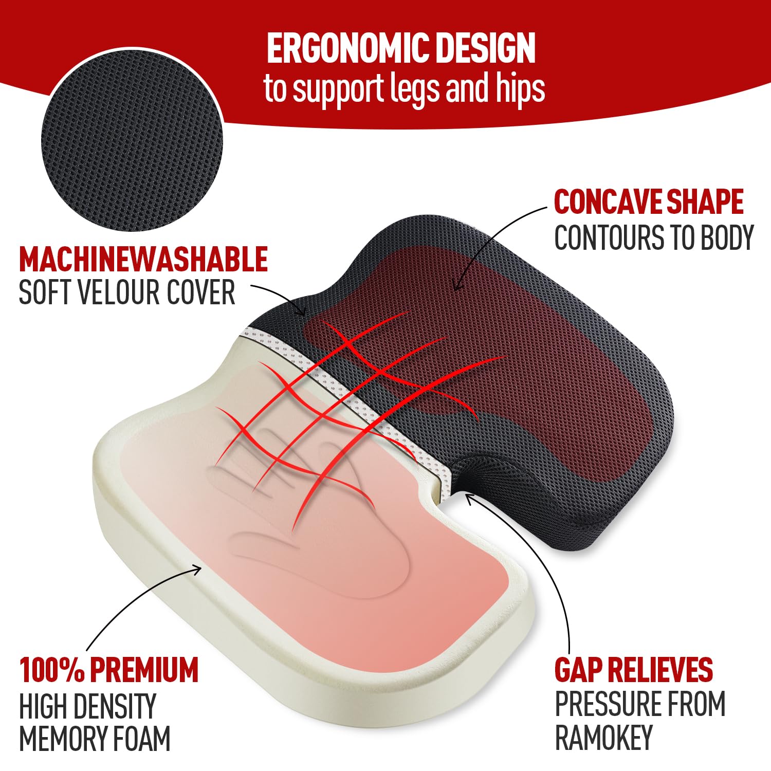 - 【Augstākās kvalitātes atmiņas putas】 Mūsu biroja krēsla sēdekļa spilvens ir izgatavots no 100% tīrām atmiņas putām, mīksts un stingrs, izmanto jūsu ķermeņa siltumu, lai pielāgotos jūsu līknēm, ergonomisks "U" formas dobs dizains nodrošina izcilu komfortu, efektīvi atbalsta astes kaulu, mazina gurnu spiedienu, ko rada ilgstoša sēdēšana.