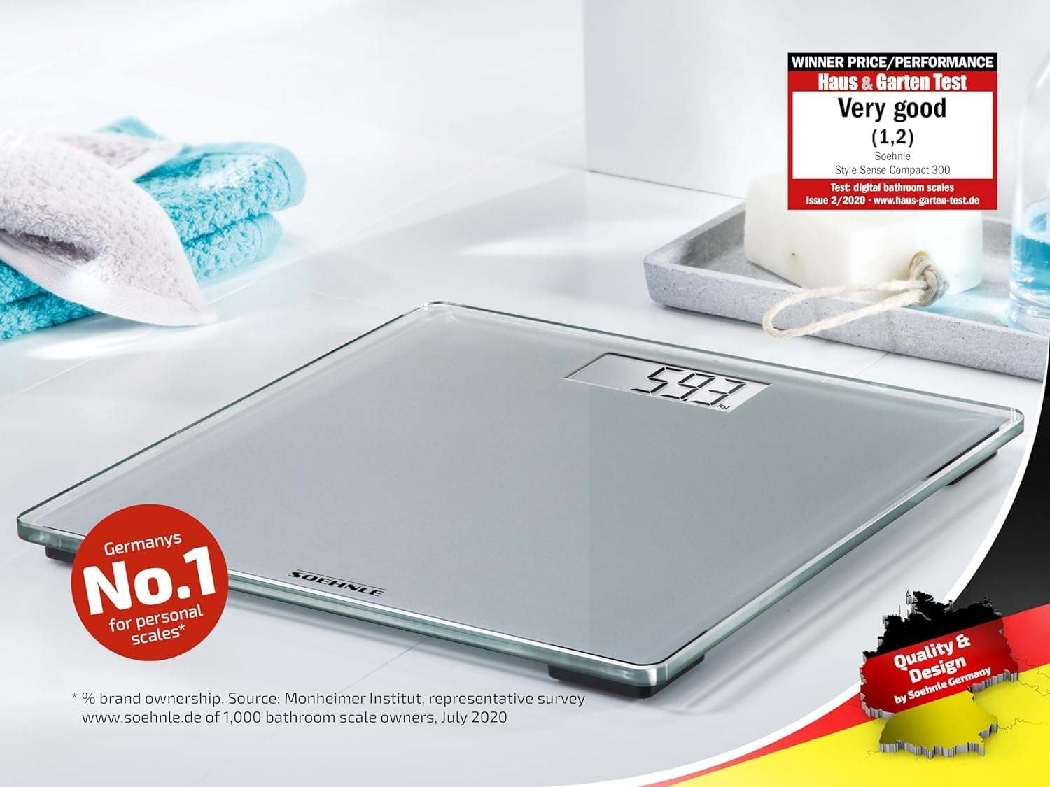 - Praktiskais piegādes komplekts - Soehnle Style Sense Compact 300 svari, ieskaitot baterijas, izgatavoti no drošības stikla, pelēki, maks. celtspēja 180 kg, ar automātisko ieslēgšanu/izslēgšanu, preces numurs 63852