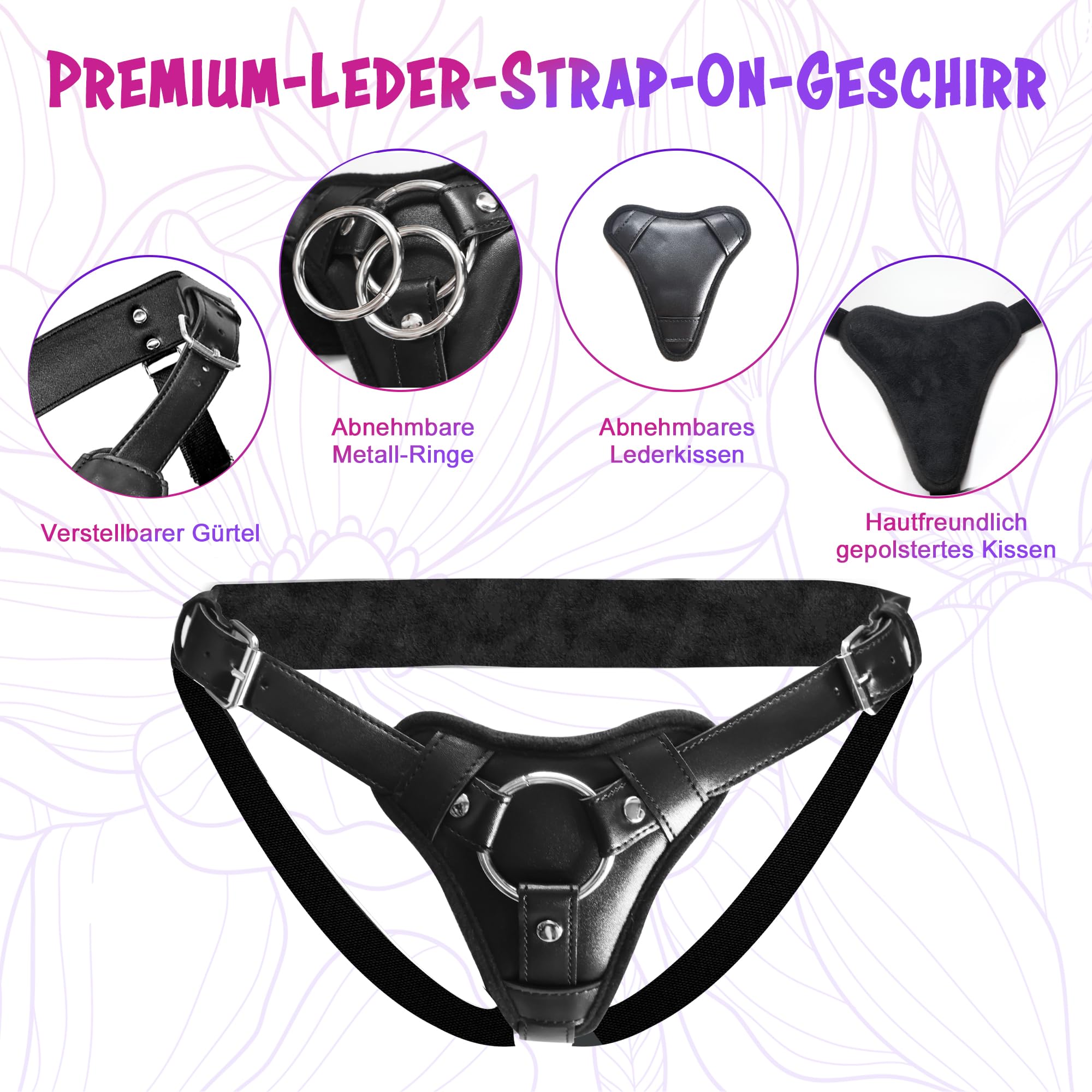 - Ērtas, regulējamas siksnas visiem ķermeņa tipiem: siksniņām ir ūdensnecaurlaidīgas ādas dizains ar mīkstu, plīša oderi, kas nodrošina gan komfortu, gan estētiku. Regulējamās siksnas nodrošina perfektu piegulšanu visiem ķermeņa tipiem un ir piemērotas vidukļa apkārtmēram no 64 cm līdz 124 cm (īpaši liels izmērs). Platā, atbalstošā mugura un metāla O veida gredzeni nodrošina stabilitāti un var noturēt smagākus dildo, padarot to ideāli piemērotu gan iesācējiem, gan pieredzējušiem lietotājiem.