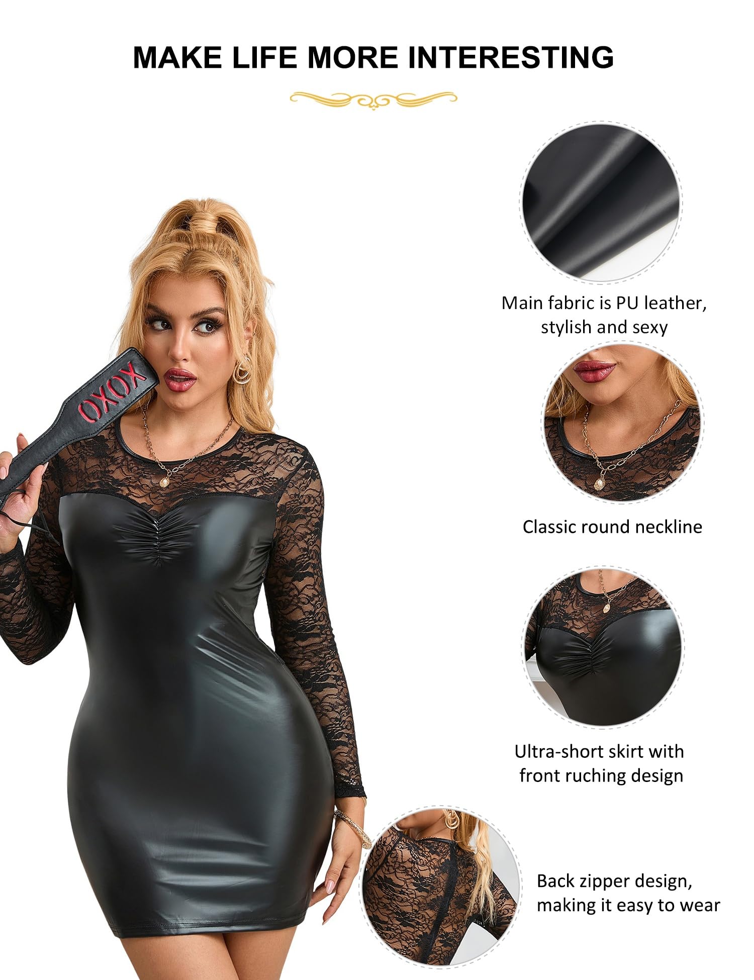- Augstas kvalitātes materiāls: Šī seksīgā kleita ir izgatavota no augstas kvalitātes PU ādas, kas ne tikai izskatās stilīgi un seksīgi, bet arī ir ērta valkāšanā. Materiāls piešķir spīdīgu, mitru izskatu, kas piesaista ikviena uzmanību.