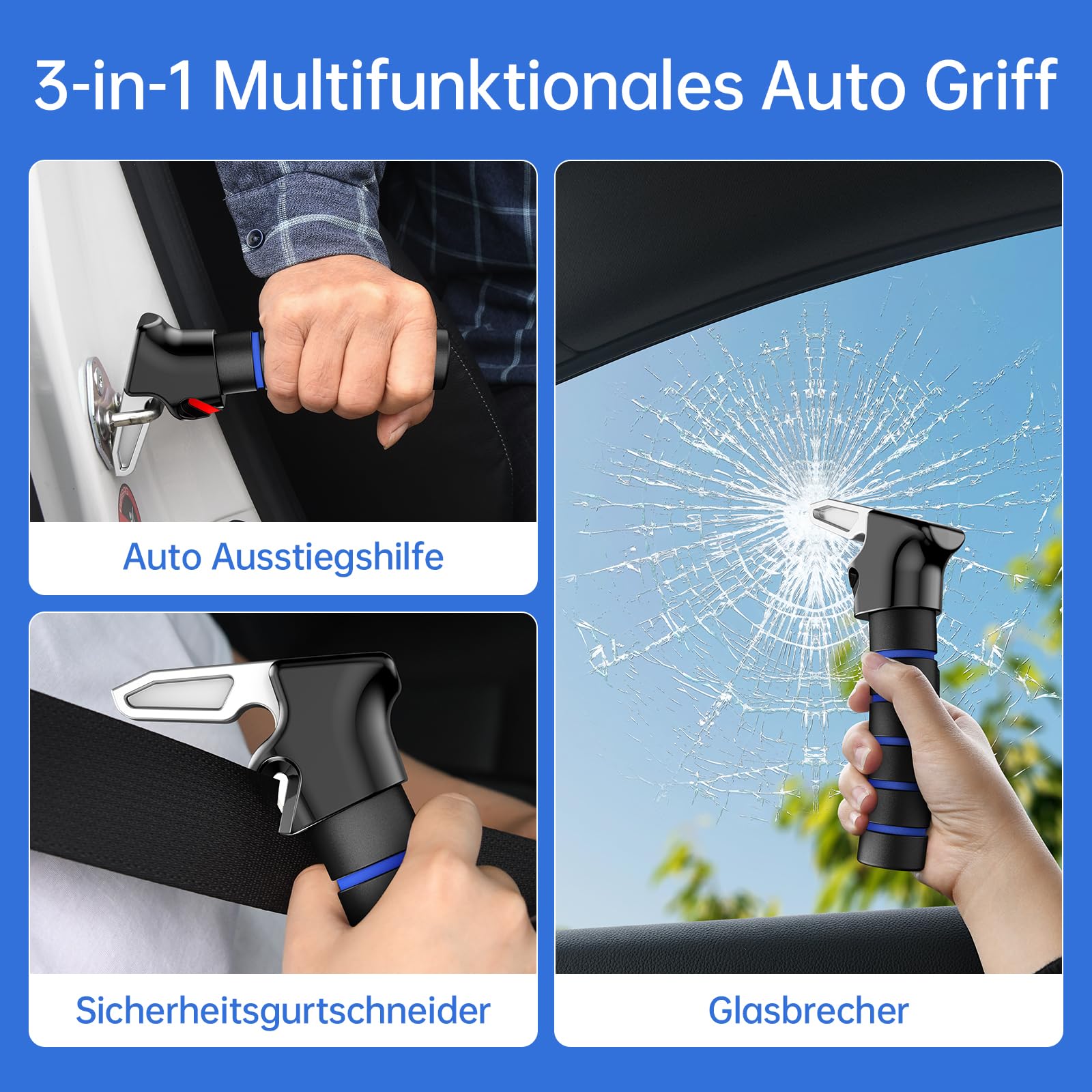 - 【Daudzpusīgs 3-in-1 daudzfunkcionāls rokturis】Šis daudzfunkcionālais automašīnas izejas palīglīdzeklis ne tikai palīdz droši iekāpt un izkāpt, bet arī piedāvā papildu drošību ārkārtas situācijā. To var izmantot, lai ārkārtas situācijā pārgrieztu drošības jostas un izsistu automašīnas logus. Tādā veidā jums vienmēr ir papildu drošības sajūta. Rokturis ir piemērots lielākajai daļai transportlīdzekļu tipu