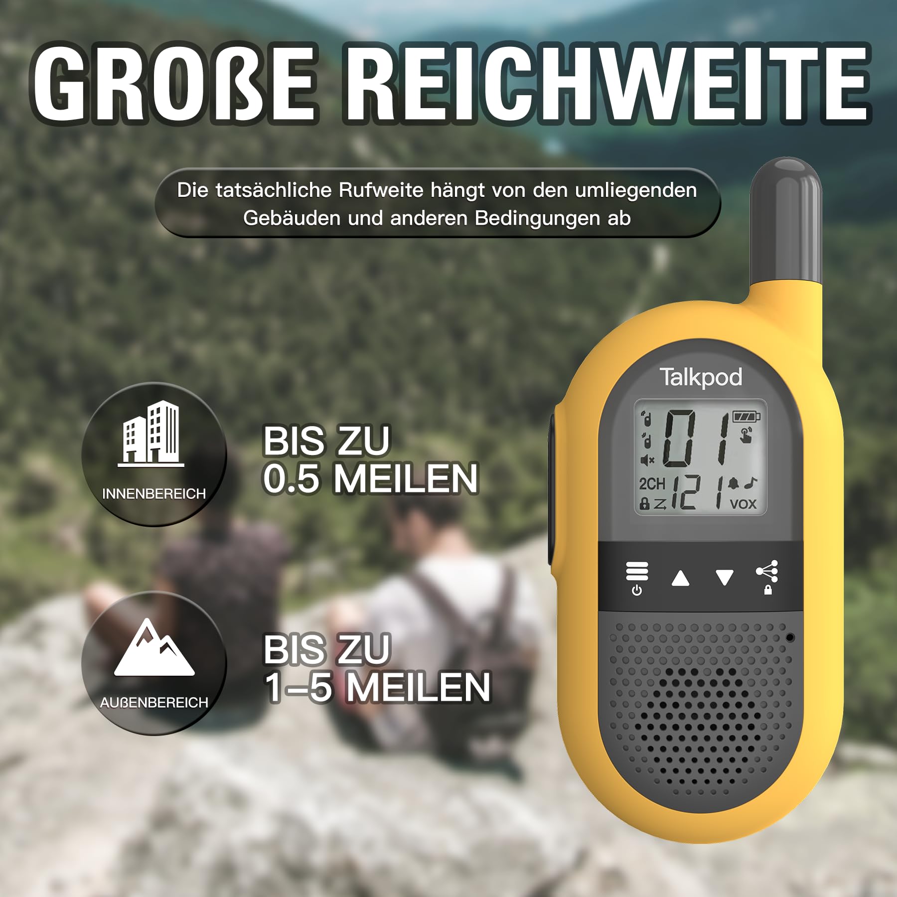 Talkpod F40 rācija bērniem, pieaugušajiem, liela darbības rādiusa radio, 16 kanālu rācija, uzlādējama ar litija jonu akumulatoru, C tipa uzlādes kabelis mājas ballītēm, riteņbraukšanai, kempingam, pārgājieniem un piedzīvojumiem
