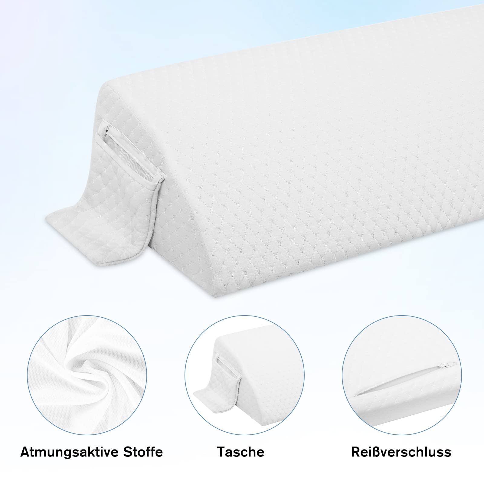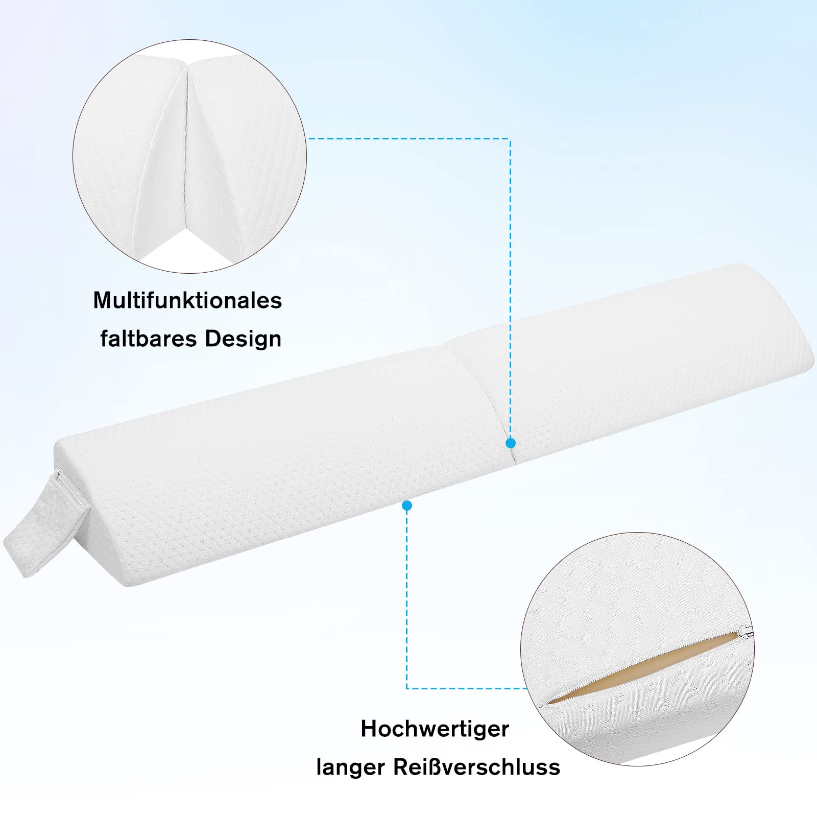 - [Piemērots izmērs lielākajai daļai gultu] apm. 60x8x6 collas (152x25,5x15 cm) izmēra ķīļveida matrača spraugu aizpildītājs ir piemērots, lai aizpildītu spraugu starp galvgali/kājūli/gultas margu/sienu un matraci, lai pasargātu spilvenu no nokrišanas. Šo ķīļveida spilvenu var izmantot arī uz dīvāna, lai sniegtu papildu komfortu, atbalstu un ērtības. Matrača ķīlis ir ideāli piemērots cilvēkiem ar bezmiegu un var palīdzēt ikvienam ērti gulēt naktī.