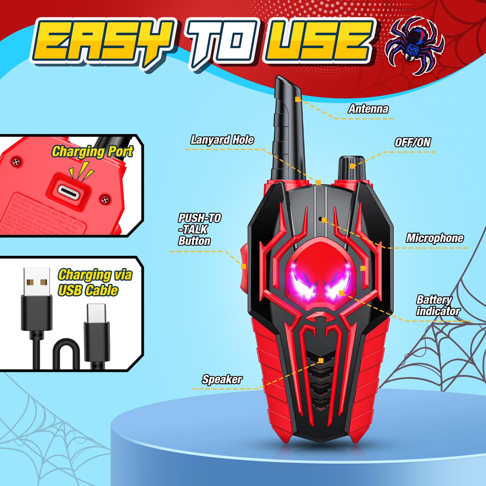 - 【Uzlādējama un viegli lietojama】 — Mūsu uzlādējamajai rācijai ir uzlabots akumulators. Pēc 1 stundas uzlādes laika ar to var strādāt līdz pat 8 stundām. Rācijai ir tikai viens IESLĒGŠANAS/IZSLĒGŠANAS slēdzis un viena RUNĀŠANAS poga, tāpēc nav jāuztraucas par frekvenču pārklāšanos. Pateicoties vienkāršai darbībai, šo rotaļlietu ir viegli lietot bērniem vecumā no 3 līdz 10 gadiem.