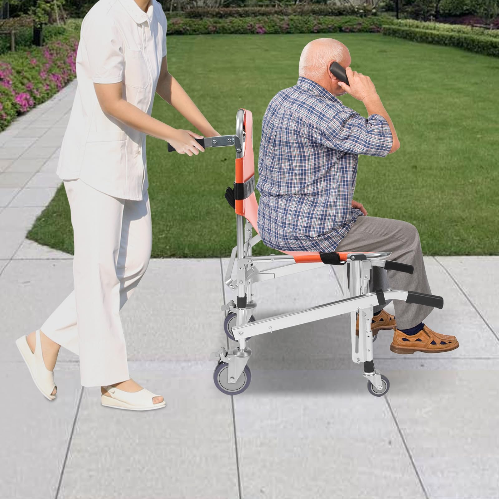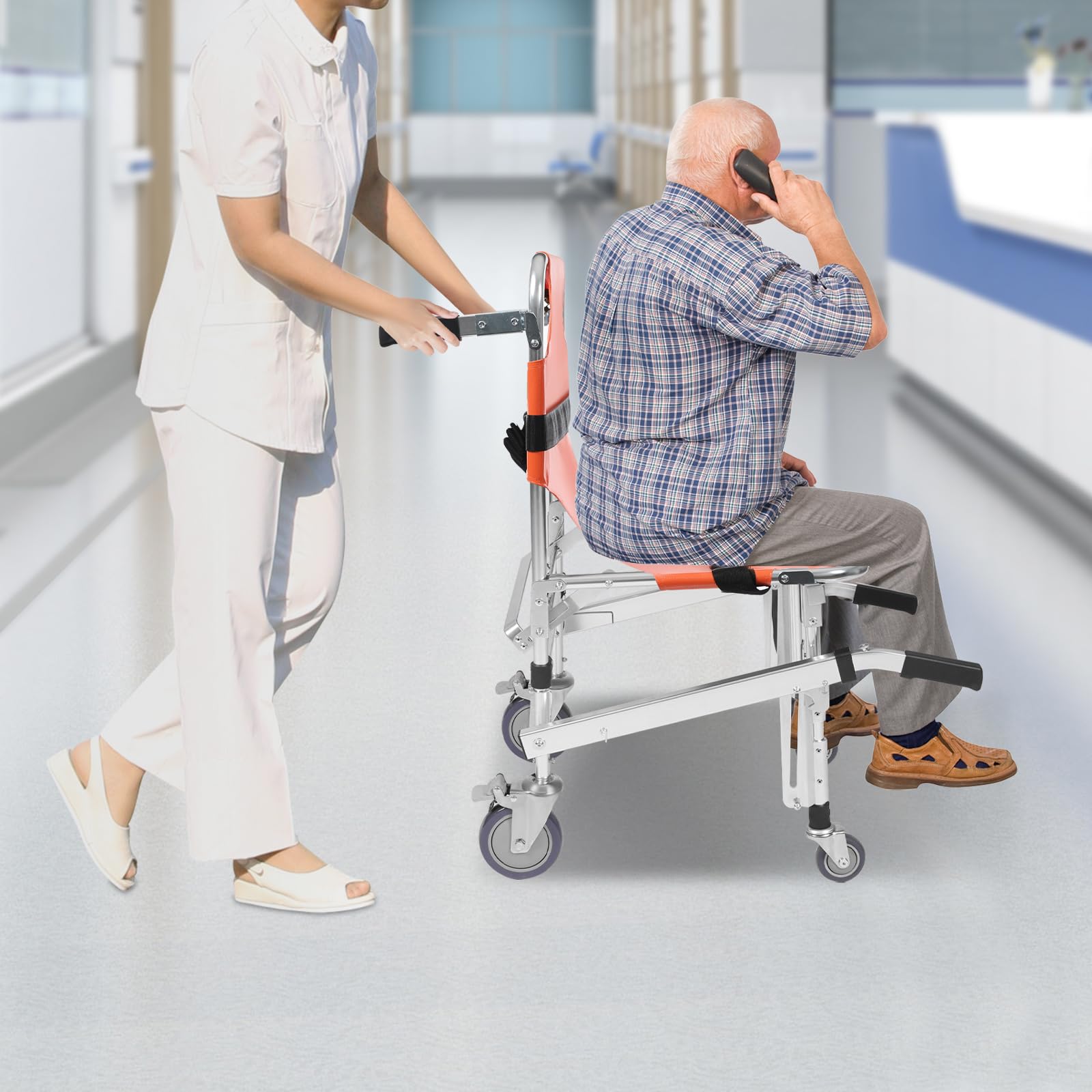 - Viegli transportēt un viegli tīrīt:: Transportēšanas krēsla salokāmais dizains ļauj to viegli ievietot automašīnas vai ātrās palīdzības bagāžniekā, padarot to ērtu ceļošanai un glābšanas darbiem. PVC sēdeklim ir labāka izturība pret traipiem, tāpēc to var viegli noslaucīt.