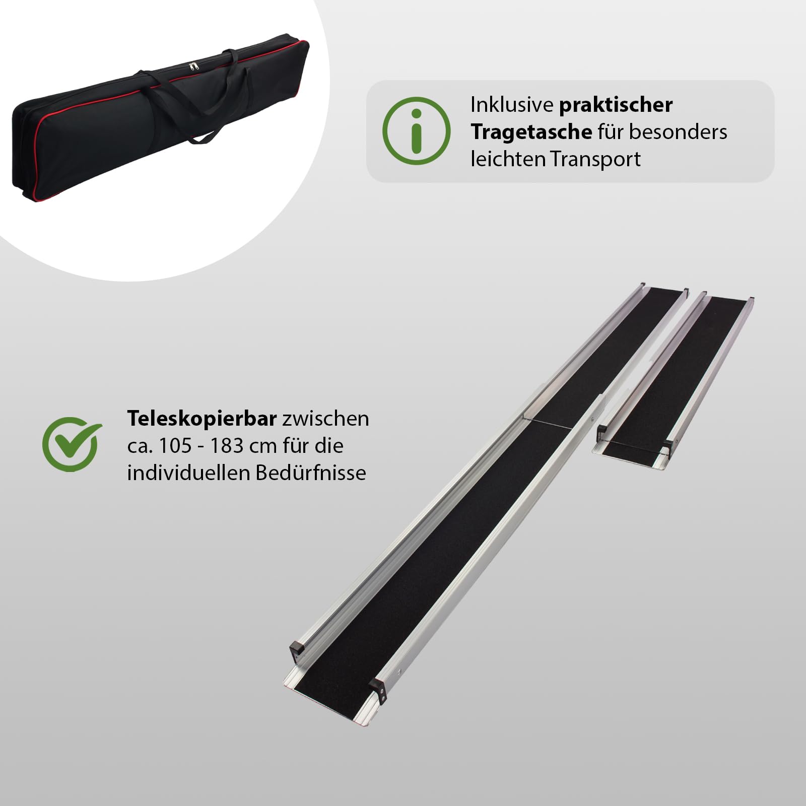 TRUTZHOLM ratiņkrēslu rampas teleskopiskā rampa 120–213 cm piekļuves rampas iekraušanas rampas iekraušanas sliežu pāris | 270 KG | Neslīdošs pārklājums, viegls tekstila somā (213)