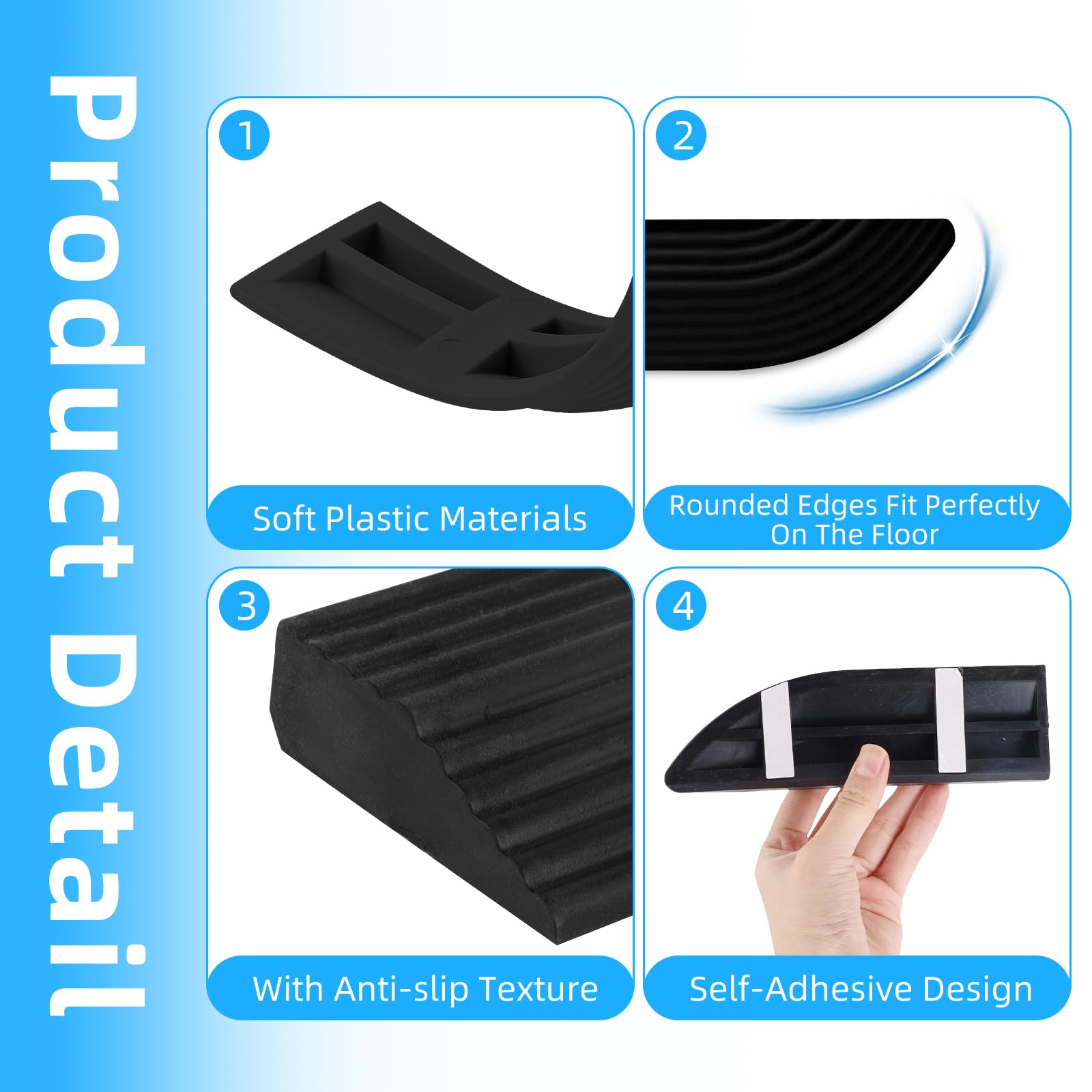 - Elastīga uzstādīšana un pielāgošanās iespējas: Segmentētais dizains (četras neatkarīgas daļas) piedāvā ārkārtīgi augstu elastību. Lietotāji var pielāgot uzstādīšanas izkārtojumu atbilstoši faktiskajai sliekšņa situācijai un viegli tikt galā ar dažāda augstuma un platuma sliekšņu radītajiem izaicinājumiem. Dizains ar slīpētām malām ir gluds. Tas ļauj robotam viegli pārvietoties mazās telpās, piemēram, vannas istabas durvīs, un no tām.