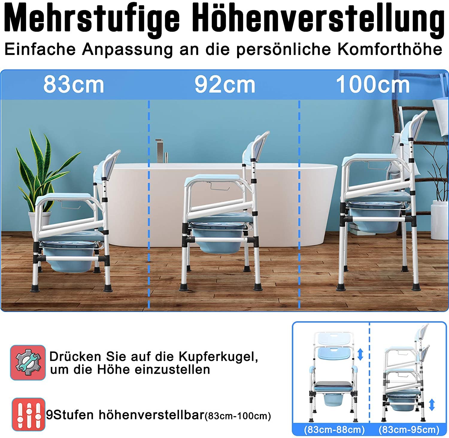 UISEBRT tualetes krēsla augstuma regulējams tualetes krēsls, dušas pods ar neslīdošu tualetes spaini cilvēkiem ar invaliditāti un vecāka gadagājuma cilvēkiem