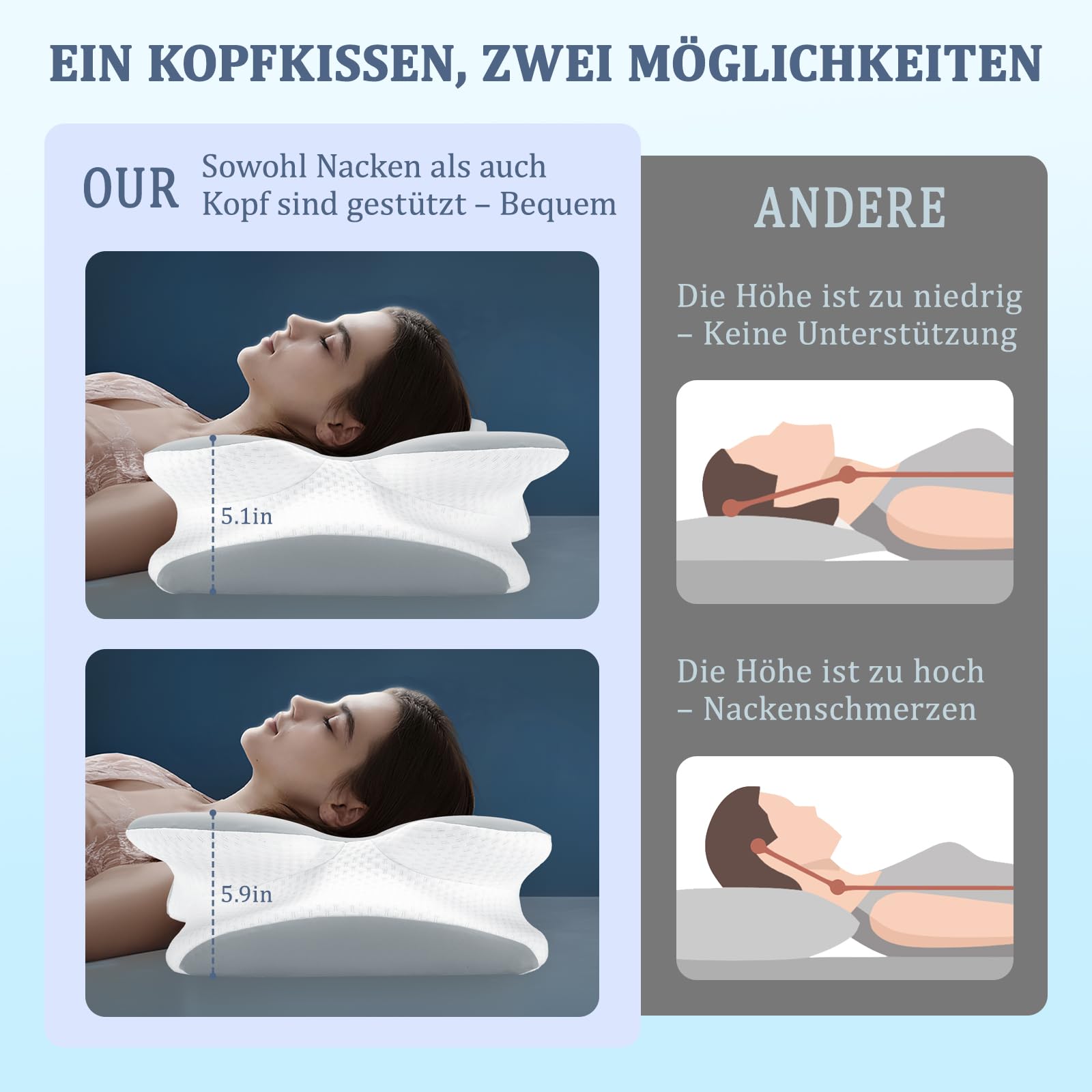 - Pielāgots atbalsts katram gulētājam: mūsu ergonomiskais spilvens ar kontūrveida dizainu un diviem augstuma iestatījumiem piedāvā personalizētu komfortu. Neatkarīgi no tā, vai guļat uz sāniem, muguras vai vēdera, šis ortopēdiskais spilvens uztur mugurkaulu pareizā stāvoklī un atslābina muskuļus. Nepieciešams miega spilvens, kas piemērots jebkurai gulēšanas pozai.