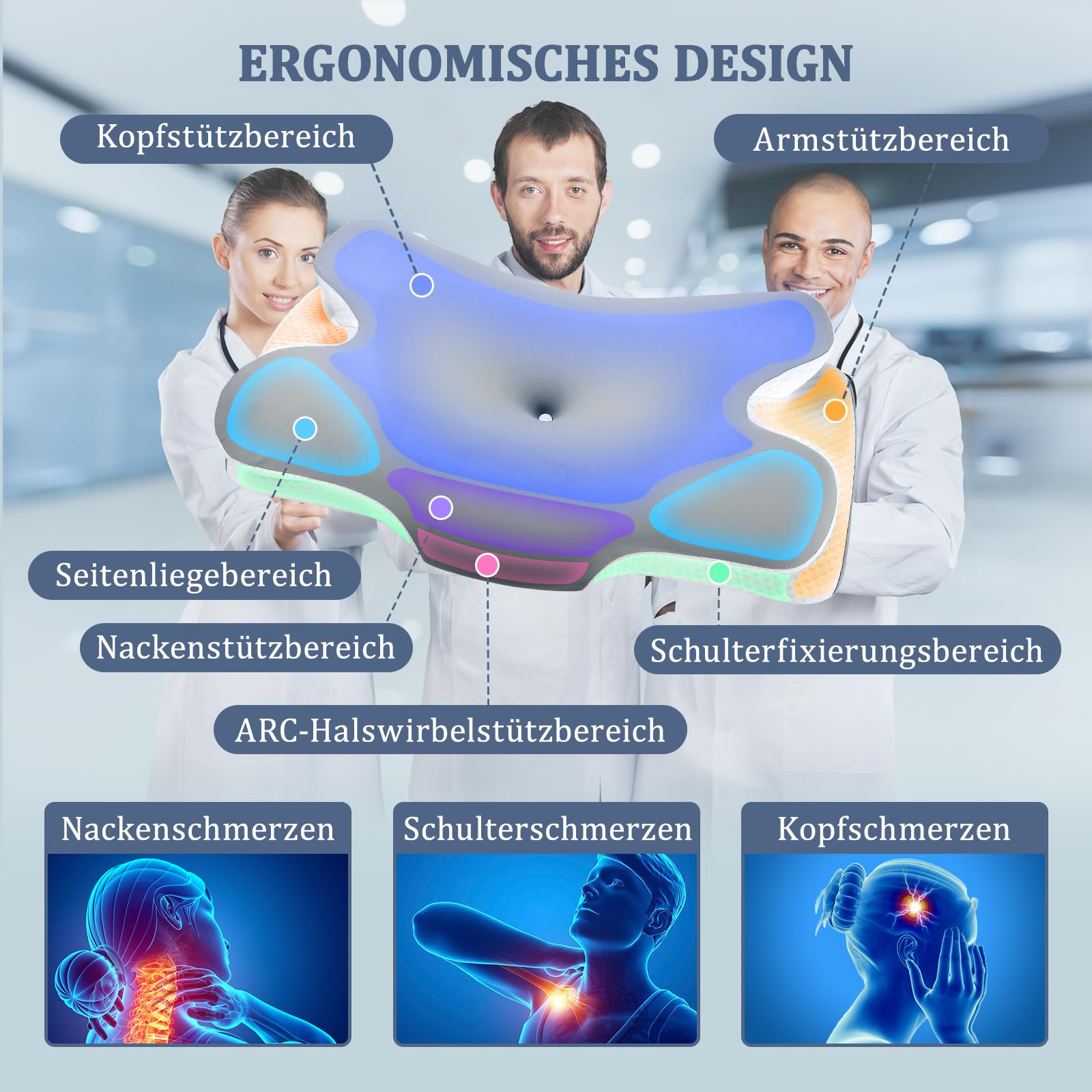 - Kakla spilvens mazākām kakla sāpēm un labākam miegam: Vai jūs bieži pamostaties ar kakla sāpēm vai ciešat no bezmiega? Mūsu kakla kontūras dizains ir īpaši izstrādāts, lai atbilstu galvas, kakla un plecu dabiskajām kontūrām. Šis atmiņas putu spilvens nodrošina optimālu atbalstu un mazina diskomfortu, lai jūs varētu baudīt mierīgu miegu. Ideāls miega spilvens ikvienam, kurš cieš no kakla sāpēm vai galvassāpēm.