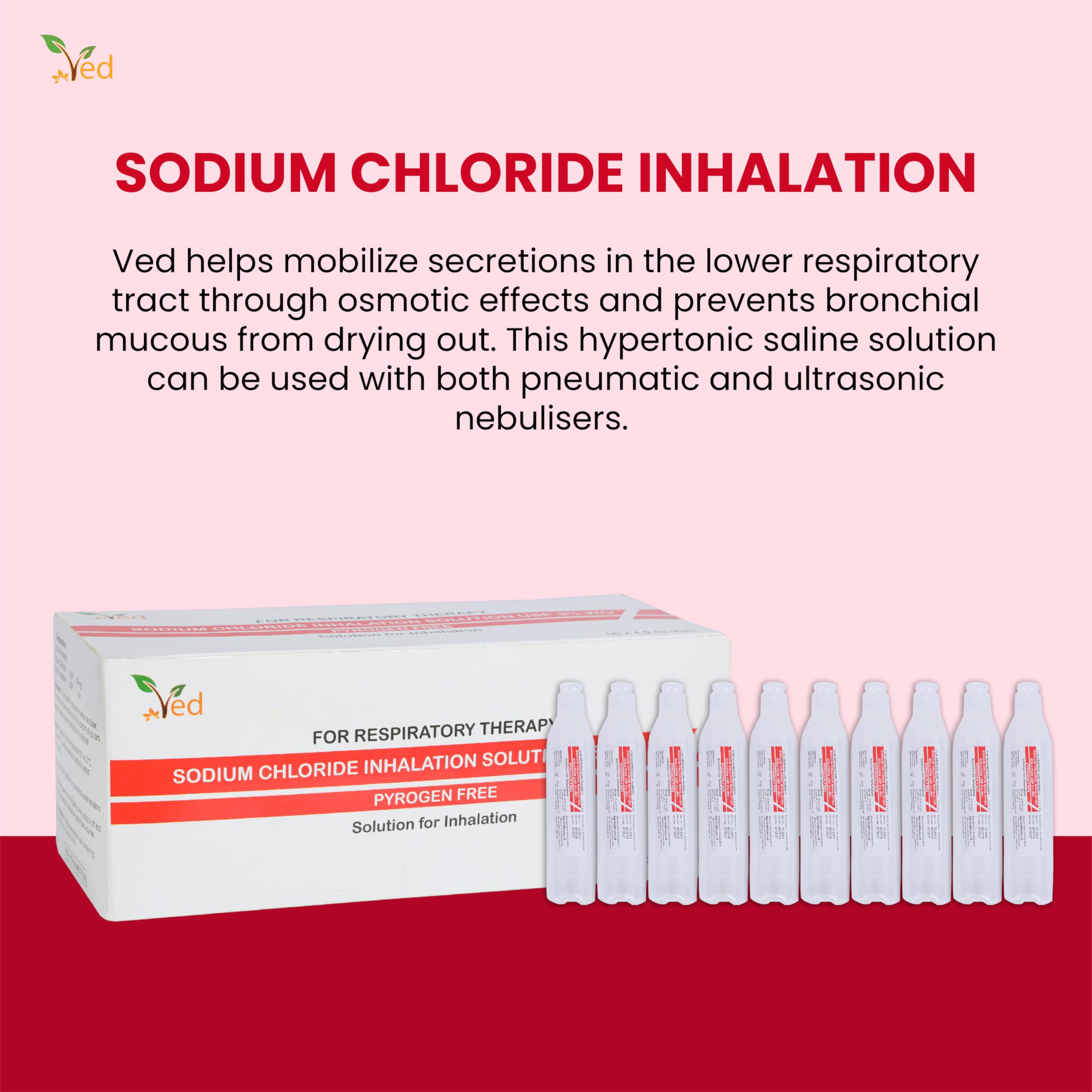 VED hipertonisks inhalācijas sāls šķīdums, 3% nātrija hlorīds (NaCl), 50 x 4,0 ml vienreizējas devas flakoni pieaugušajiem un bērniem