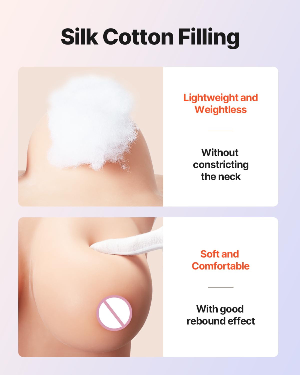 - Zīda kokvilnas polsterējums: Šī reālistiskā silikona krūšu plāksne, kas pildīta ar zīda kokvilnu, ir vieglāka un ērtāka, nodrošinot bezsvara sajūtu, neradot nekādu slodzi uz kaklu.