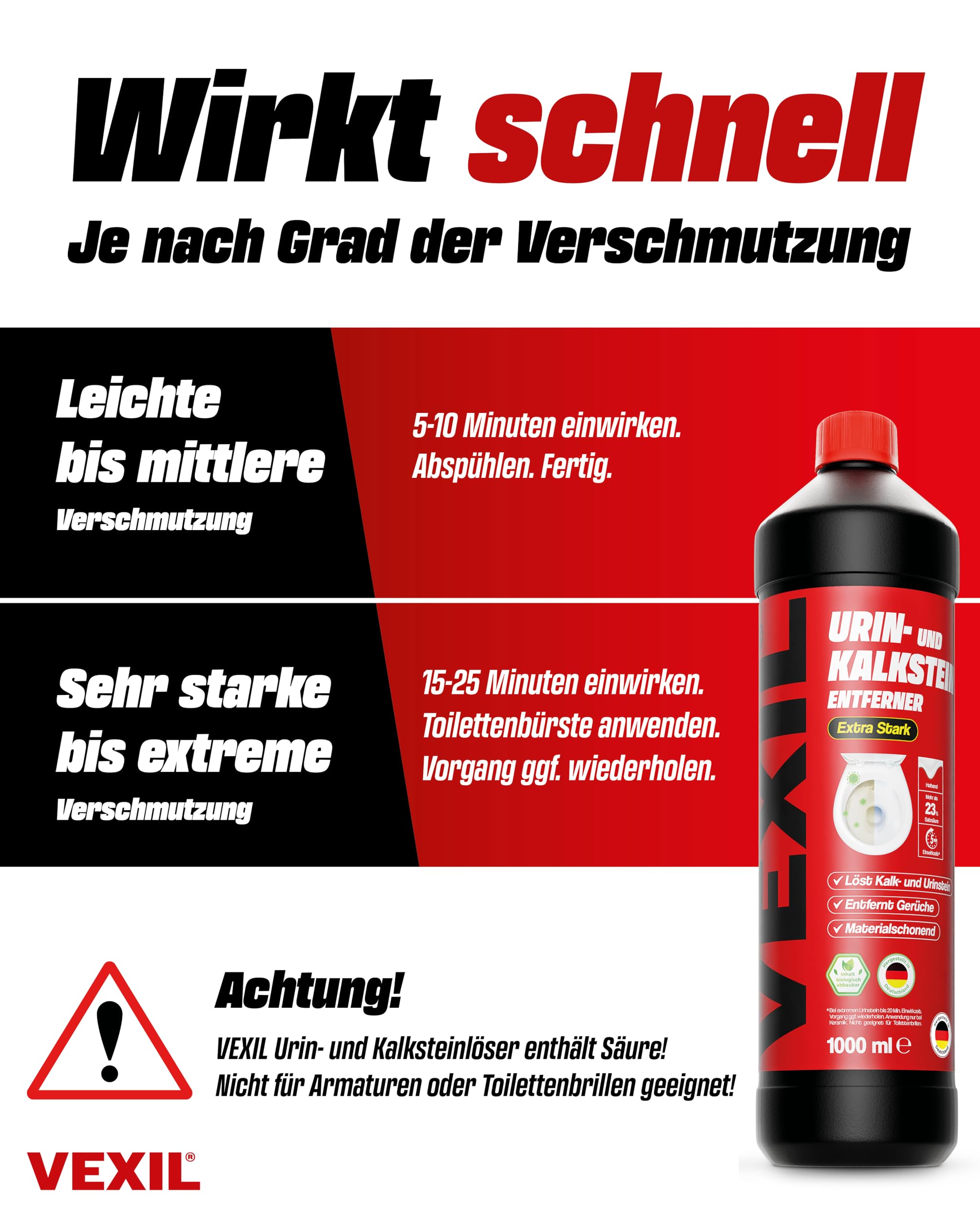 VEXIL® urīnakmeņu noņēmējs ĪPAŠI SPĒCĪGS - 1000 ml - bez piepūles noņem spītīgu urīnu un kaļķakmeni - Profesionāls tualetes tīrīšanas līdzeklis - bioloģiski noārdāms - Urīnakmeņu noņēmējs Ražots Vācijā