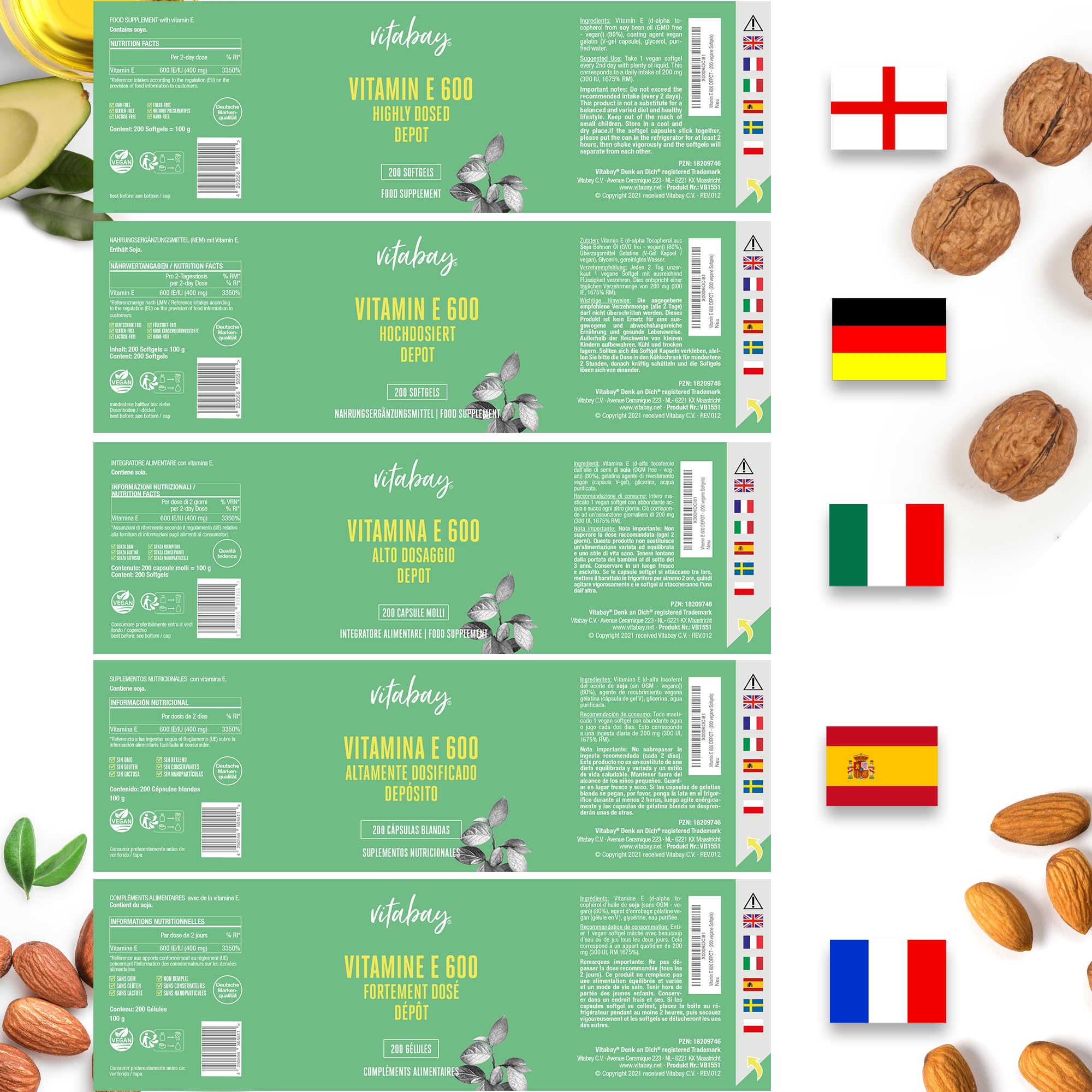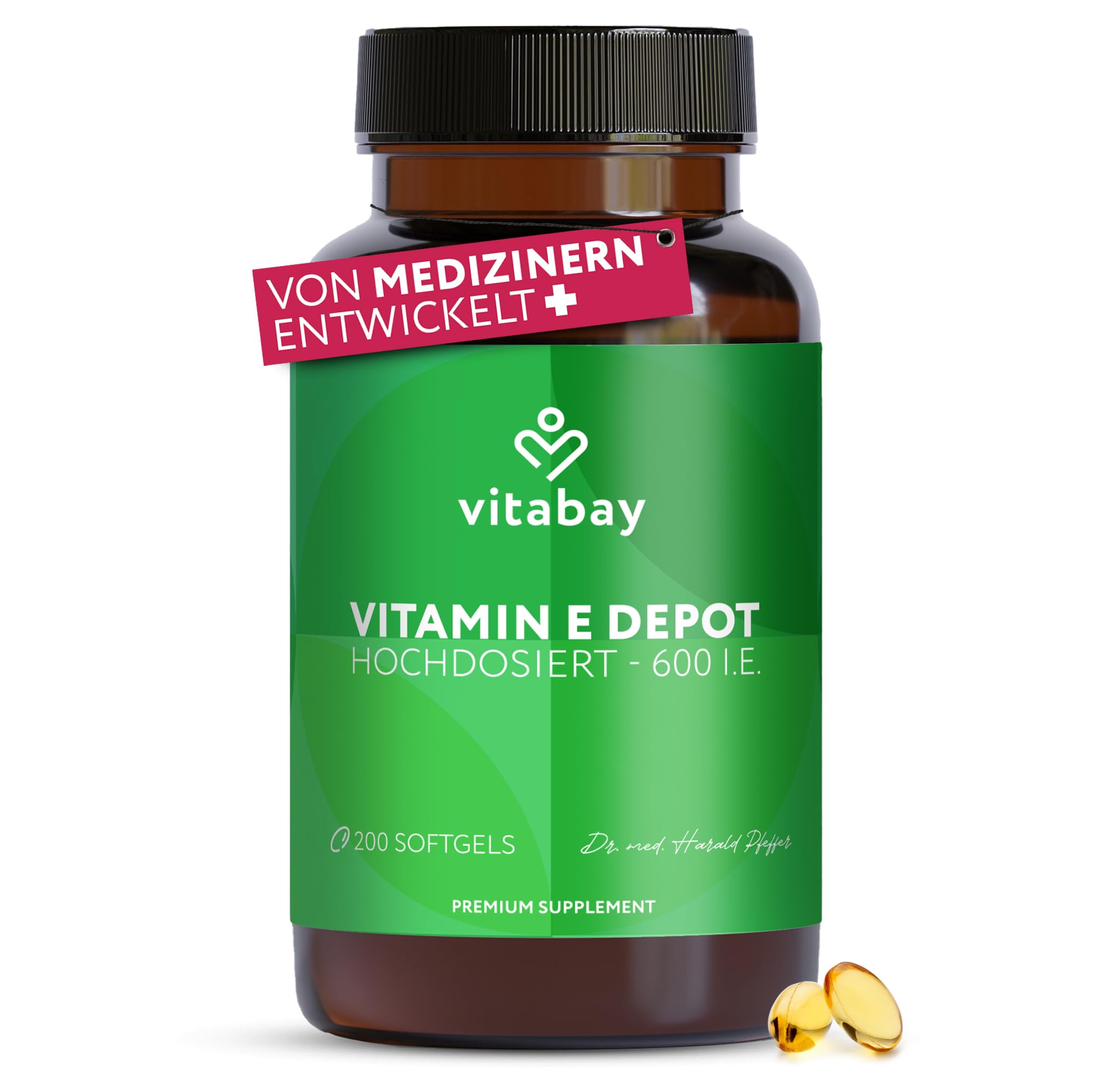 Vitabay E vitamīns 600 SV Depot augsta deva - 200 E vitamīna kapsulas vegāns un laboratorijā pārbaudīts ar tokoferolu un tokotrienolu - E vitamīns veicina šūnu aizsardzību pret oksidatīvo stresu