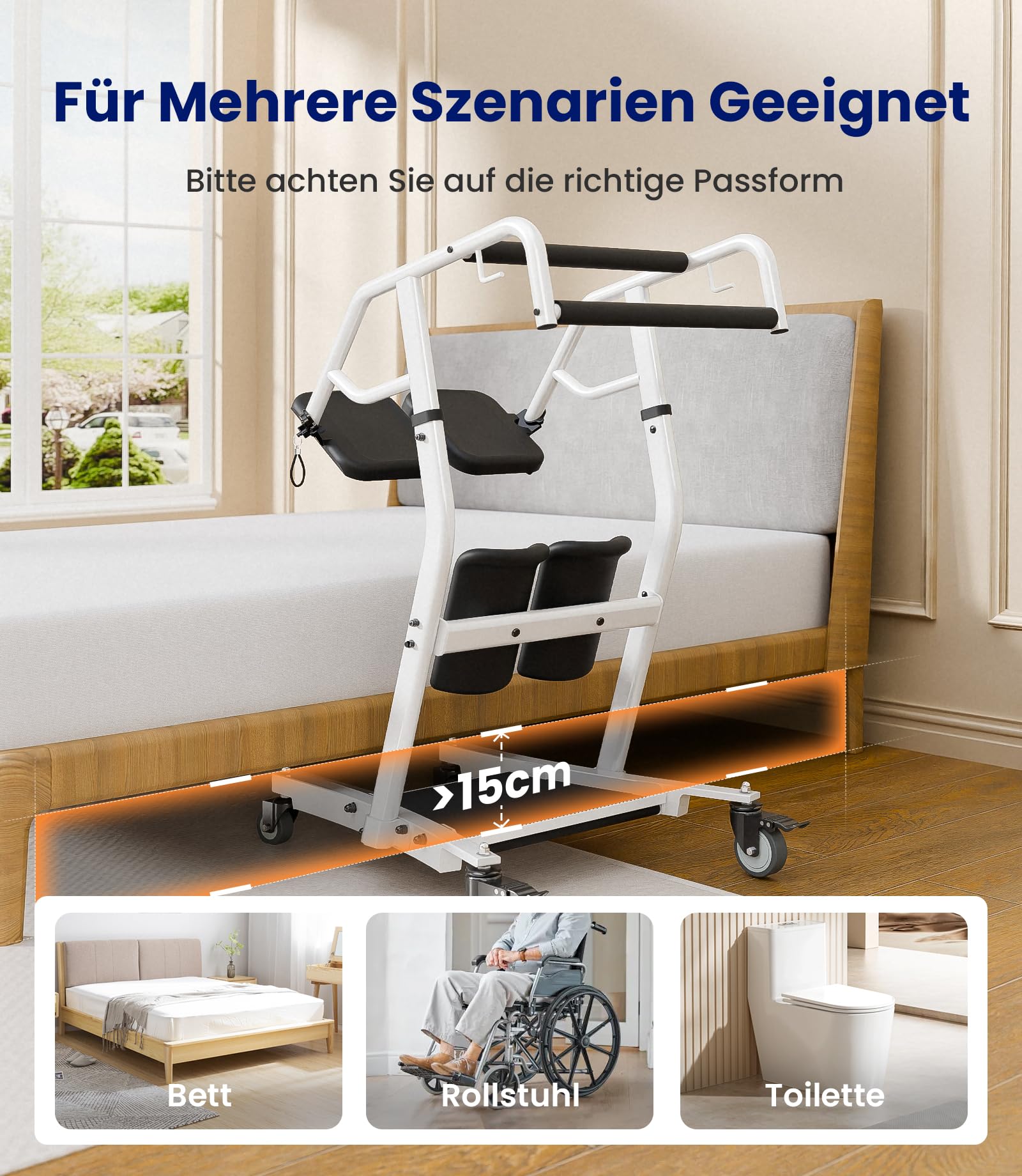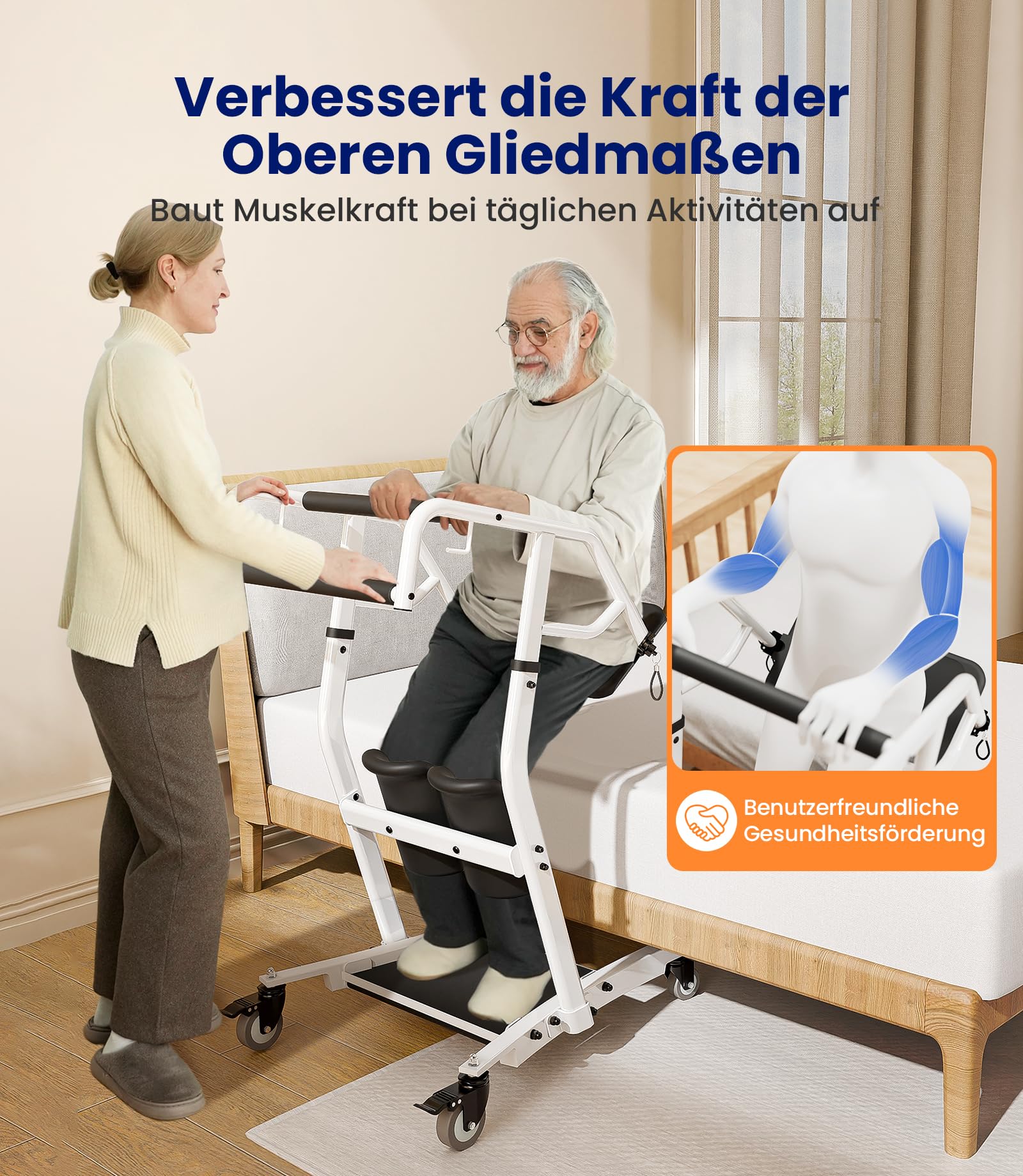 - 【Daudzpusīga lietošana】Stāvēšanas un pārvietošanas palīglīdzeklis ir ideāls risinājums pacientiem ar daļēju mobilitāti un efektīvi atbalsta aprūpētājus. Tas palīdz droši apsēsties, piecelties un pārvietoties. Vienlaikus tas atbalsta arī augšējo ekstremitāšu veselības veicināšanu. Mēs īpaši iesakām šo ierīci pacientiem ar daļēju mobilitāti. To var kombinēt arī ar jostu
