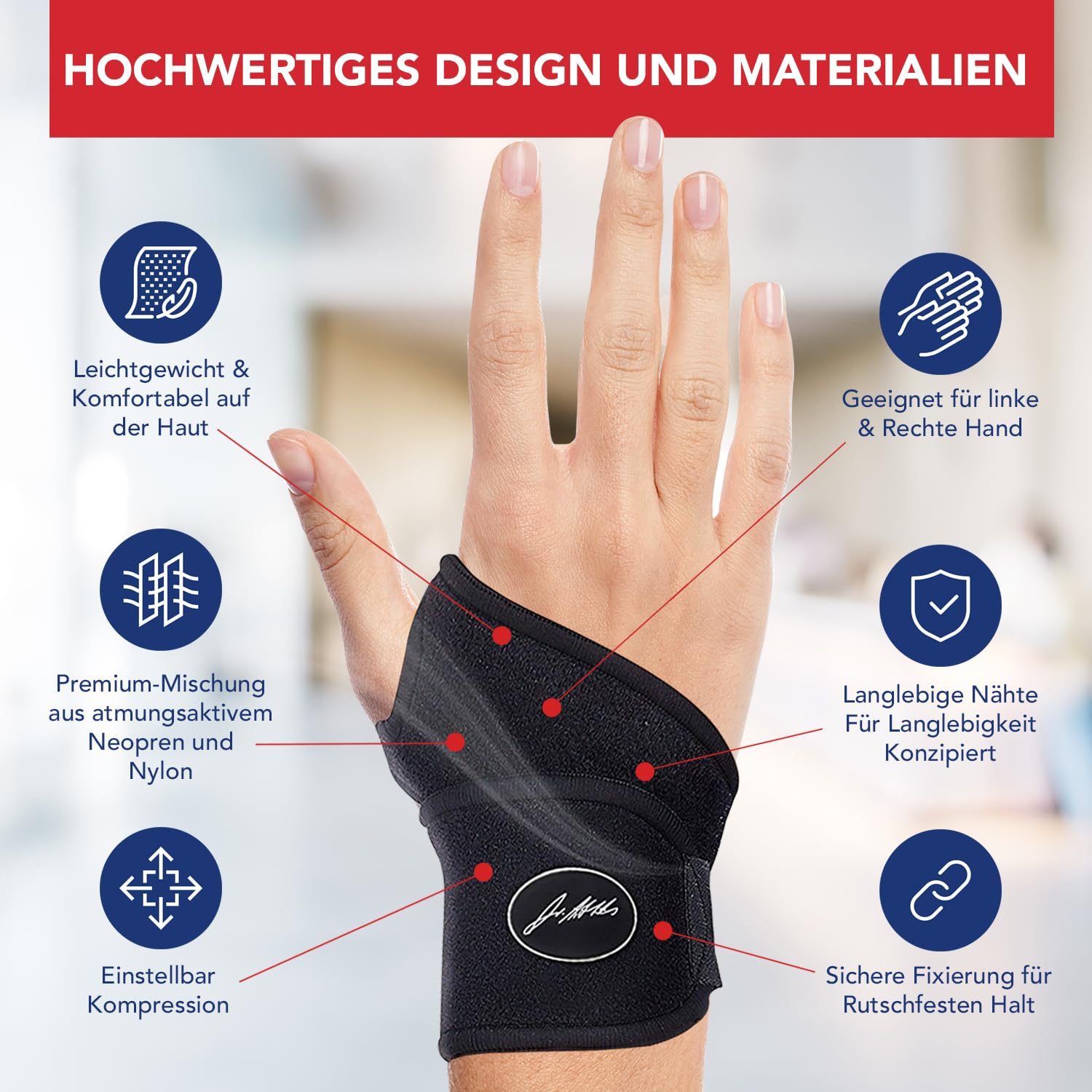 - ĒRTS MATERIĀLS: Augstas kvalitātes 65% neoprēna un 35% neilona maisījums, un vienīgais šāda veida plaukstas locītavas atbalsts, kas ir oderēts ar varu. Nodrošina ērtu valkāšanu gan dienā, gan naktī. Rokas pārsējs ir ideāli piemērots visiem roku izmēriem.