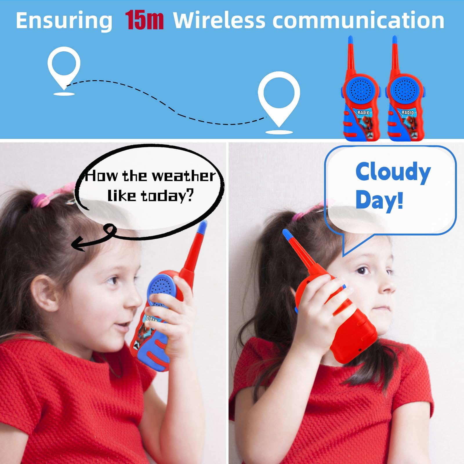 Rācija bērniem, 2 gab. zirnekļa rācijas rotaļlietas no 3 4 5 6 7 8 gadu vecuma zēniem un meitenēm, radio komplekts, bērnu rotaļu rācijas dāvanas piedzīvojumiem kempingā, pārgājienos, brīvā dabā