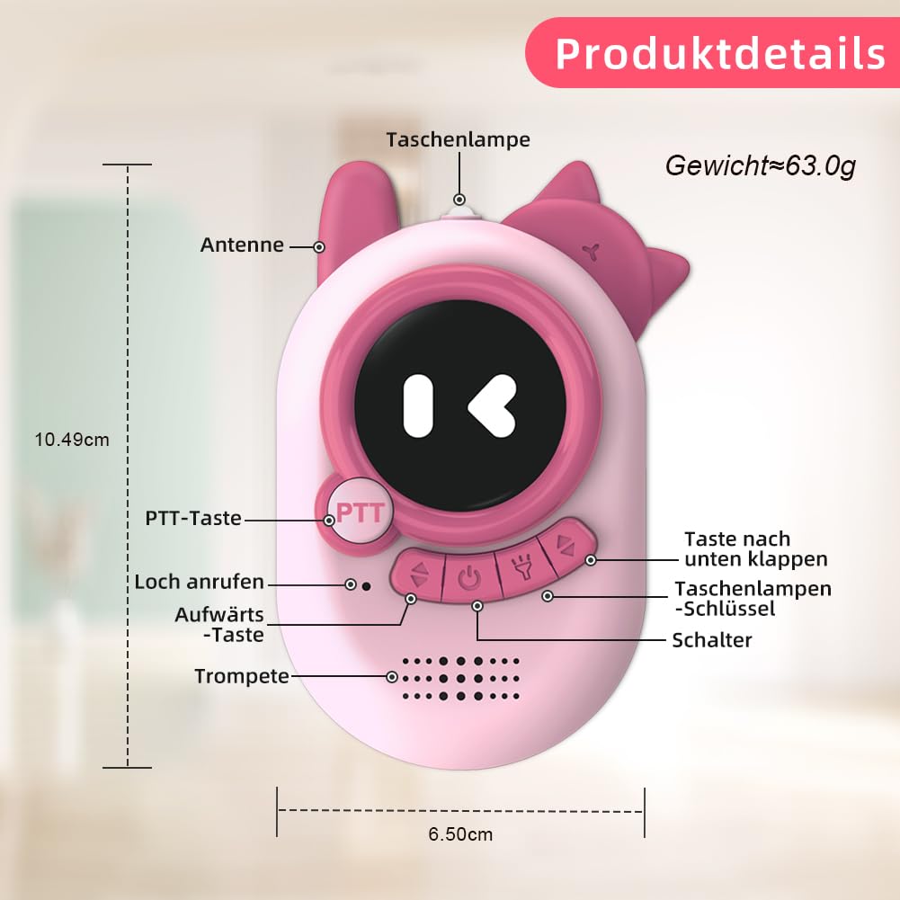 - Lieliska komunikācija: Uzlabotā balss tehnoloģija nodrošina kristāldzidru sarunu skaņu bez trokšņiem, ideālos apstākļos sasniedzot pat 300 metru diapazonu. Tas nodrošina uzticamu saziņu pat lielos attālumos. Uzturiet saikni ar draugiem un ģimeni, īpaši āra aktivitāšu laikā, šī ir ideāla rotaļlieta gan zēniem, gan meitenēm.