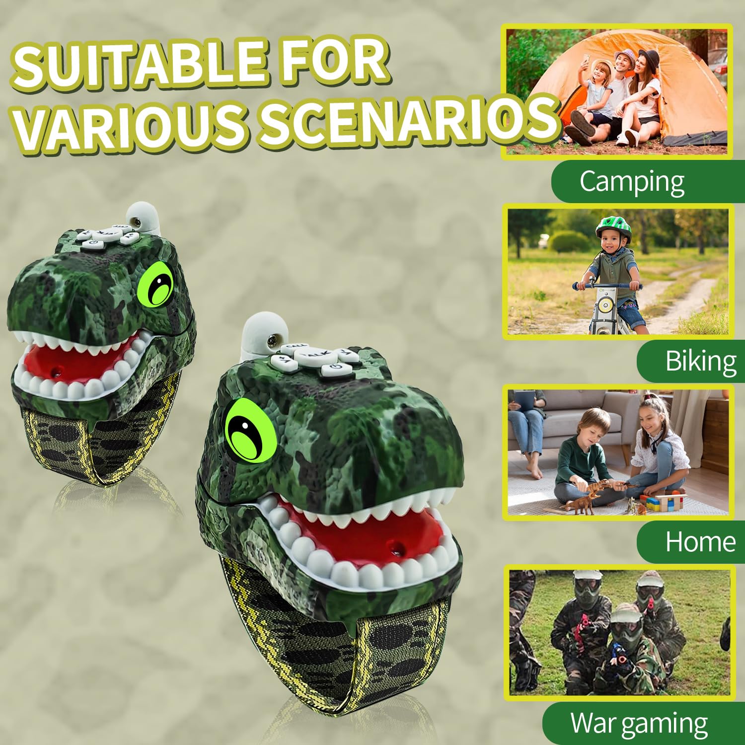 Rācijas bērniem, 2 iepakojumu dinozauru rotaļlietas zēniem un meitenēm vecumā no 5 līdz 12 gadiem, 3 kanālu liela darbības rādiusa ar izsaukšanas funkciju, kempinga aprīkojums, T-Rex dzimšanas dienas dāvanas