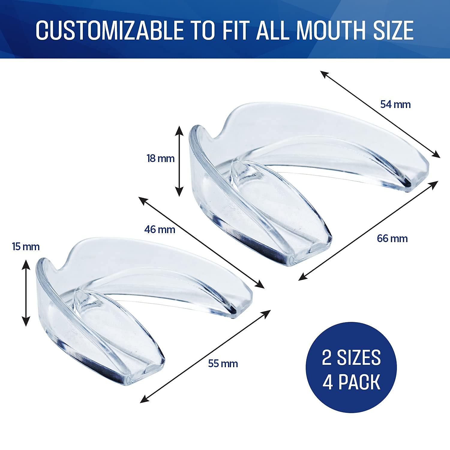Wewell mutes aizsargs zobu griešanai, aizsargā zobu emalju, uzlabo miega kvalitāti, 4 formējami mutes ieliktņi zobu griešanai un gulēšanai, novērš bruksismu un zobu griešanu – 2 izmēri