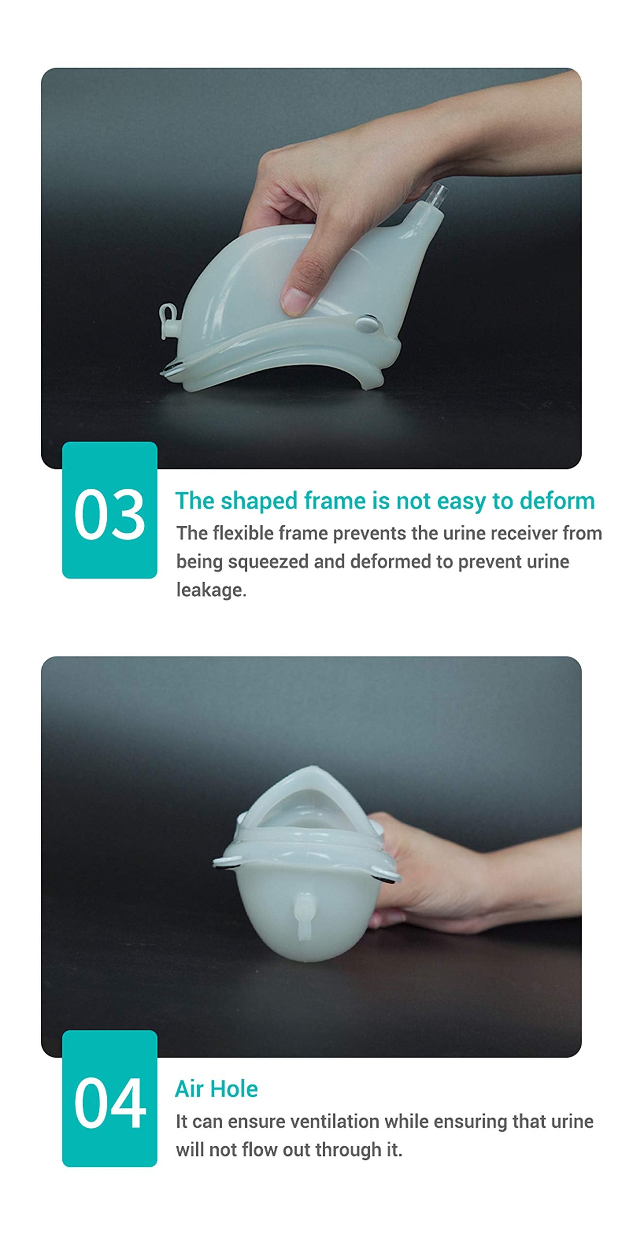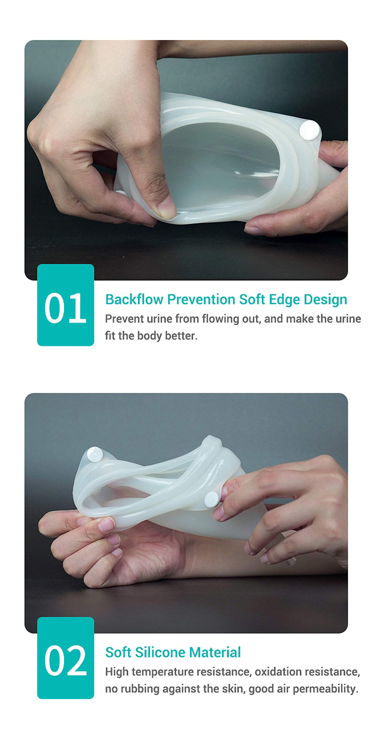 - Pārnēsājams un atkārtoti lietojams: Viegli tīrāms, mīksts silikona apvalka materiāls nodrošina labāku hermētiskumu un lielāku komfortu salīdzinājumā ar tipiskiem pisuāriem.