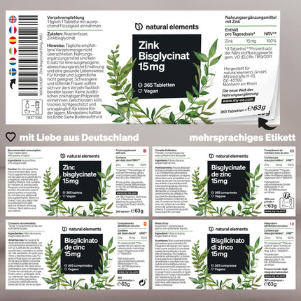 Cinks 15 mg – 365 tabletes – labi panesams cinka bisglicināts (cinka helāts) – vegāns, lielas devas, bez nevajadzīgām piedevām – ražots Vācijā un laboratoriski pārbaudīts